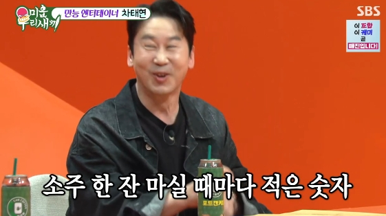 [스타뉴스|김정주기자]/사진=SBS예능프로그램'미운우리새끼'방송인신동엽이딸의남다른주량을언급했다.26일방송된SBS예능프로그램'미운우리새끼'에는차태현이스페셜MC로출연해남다른예능감을선보였다.이날차태현은성인이된큰아들의근황을전하며"수찬이가예전에는대화가별로없었는데스무살이되니까조금편해졌다.아들이스무살이되면같이술먹을생각을했는데가끔한두잔먹는다.확실히얘기도많이하게된다.전에는이름도잘얘기안했는데이제그의이름을당당하게얘기할수있다"라고밝혀현장을웃음바다로만들었다.이에신동엽은"저도우리딸이대학에간다음에는되게편해졌다.학교에서모임이많은데술을꽤마시는것같다"라고전했다./사진=SBS예능프로그램'미운우리새끼'이에서장훈은"아버지가누군데"라고신동엽의주량을언급했고,신동엽은"잘마시는것같아서한번은얼마나마셨냐고물었더니23까지쓰여있는휴대폰을보여주더라"라고말해궁금증을안겼다.그는"소주한잔마실때마다주량을셌다더라.친구들,선배들다챙겨주고택시태워보내고왔다고한다"라고덧붙여모두를놀라게했다.그러자서장훈은"그DNA는어쩔수없다"라고혀를내둘렀다.김정주기자[email protected]©스타뉴스&starnewskorea.com,무단전재및재배포금지