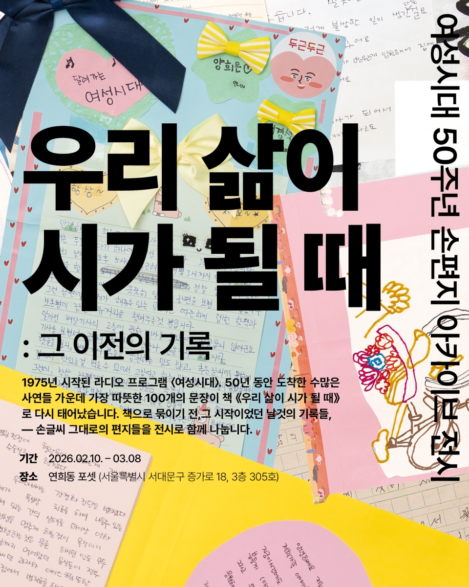 MBC라디오의대표장수프로그램인'여성시대양희은,김일중입니다'가방송50주년을기념해김영사와발간한필사집'우리삶이시가될때'가연희동에서팝업스토어를개최한다.iMBC연예뉴스사진'우리삶이시가될때'는지난50년동안프로그램앞으로도착한수십만통의편지가운데깊은감동을남긴100여편의사연을골라엮은필사집으로지난12월김영사에서출간돼큰호응을얻으며두달만에판매1만부를돌파했다.필사집에는'여성시대'사연을비롯해1979년부터매년개최해온‘신춘편지쇼’의당선작과고박완서작가등의심사평도함께담겨있어의미를더한다.이번팝업스토어는'우리삶이시가될때'1만부돌파를기념해마련되었으며,2월10일부터3월8일까지연희동에위치한‘포셋’에서운영된다.팝업스토어에서는그간청취자들이보낸손편지의원본을직접감상할수있으며,1980년대부터발간된‘월간여성시대’과월호들도함께전시되어시대별사연의흐름과추억을한눈에살펴볼기회를제공한다.이와더불어팝업스토어에서는1980년대'여성시대'방송에사용되었던릴테이프녹음기등라디오방송의역사를보여주는다양한자료들도함께전시되어'여성시대'가걸어온50년의여정을상징적으로보여주는의미있는볼거리가될예정이다.한편'여성시대양희은김일중입니다'는MBC표준FM(서울/수도권95.9Mhz)를통해매일오전9시5분부터11시까지방송된다.iMBC연예유정민|사진출처MBCCopyright©MBC연예.무단전재및재배포,AI학습금지.