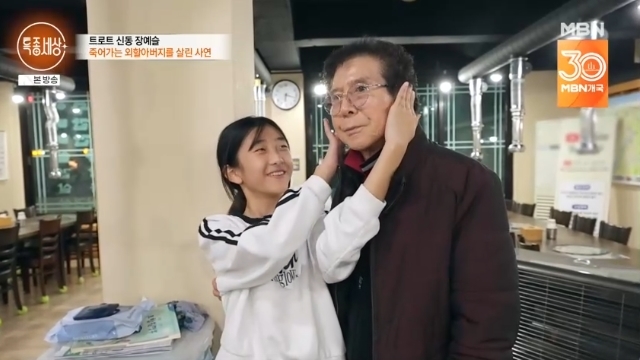 MBN‘특종세상’캡처MBN‘특종세상’캡처[뉴스엔서유나기자]트로트신동장예슬의외조부가손녀덕에다시태어난사실을고백했다.12월11일방송된MBN밀착다큐멘터리'특종세상'717회에서는외할아버지에게새삶찾아다준트로트신동10세장예슬양의사연이공개됐다.장예슬양의외할아버지우병철씨는맞벌이인딸내외를대신해손녀들케어에지극적성이었다.운영중인식당에손님이아무리많이있어도손녀들픽업시간이면슬그머니사라지곤하는그는노래학원을다니고싶다는손녀들을위해철원에서포천까지운전을하기까지.우병철씨는"손녀딸돌보는게저의하루일과라고할수있다.애들공연할때마다따라가서박수치고노래하고그즐거움으로산다"고밝혔다.우병철씨는손녀의목에좋은약도라지를캐기위해추운날씨산행까지감행했다.이런장예슬양을향한우병철씨의애틋한사랑에는남다른사연이있었다.우병철씨는"만약예슬이가태어나지않았는면내가죽었을수도있다.예슬이가태어나서제가살아있는것같고죽을고비를넘겼다보니내가이제다시제2의인생을살아가는구나한다"며2013년간암진단을받고수술을받았으나이후재발해아들에게간이식을받았음을털어놓았다.유일한생존법으로간이식을권유받았을당시,우병철씨는고민이컸던사실을고백했다."간이식을내가꼭받아야하나.집도참넉넉지않은형편에아들도간을주고몸이회복할지,내가간을받도또새로살아날지아프고고통스럽고살아갈마음조차없었다.너무아팠다"고.모든걸포기하고싶던순간기적처럼딸의임신을알게됐다는우병철씨는이에간이식수술을받기로결심했다며"태어나는걸보고싶었다.어떤아이가태어날까.예슬이가커나가는걸봐야겠다는의욕이생겨서다시살생각이들었다"고밝혀먹먹함을자아냈다.뉴스엔서유나stranger77@기사제보및보도자료[email protected]ⓒ뉴스엔.무단전재&재배포금지Copyright©뉴스엔.무단전재및재배포금지.