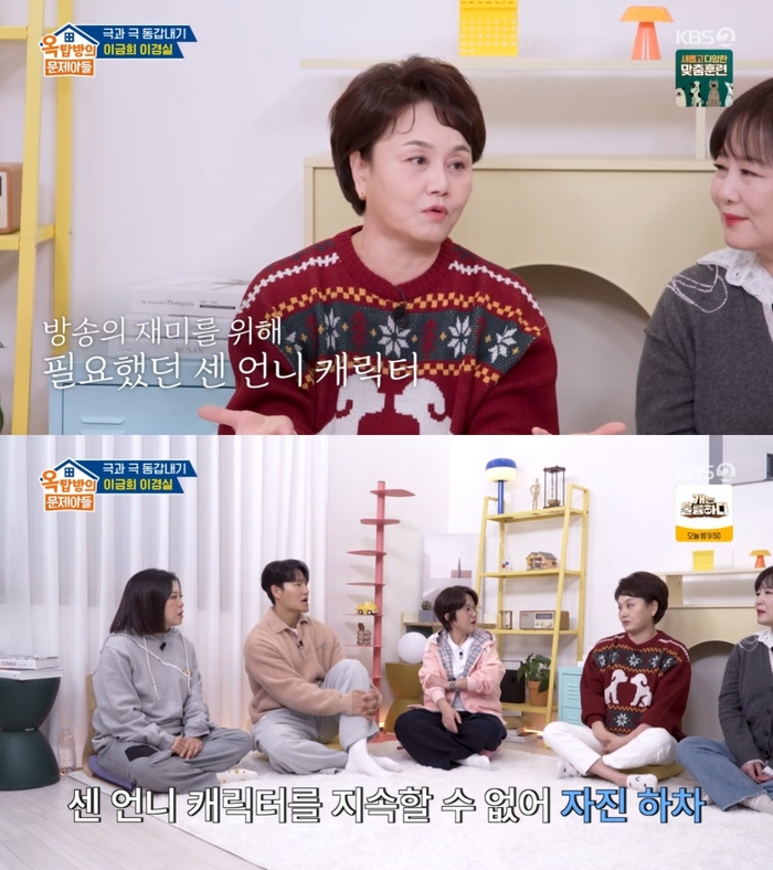 ‘옥탑방의문제아들’.사진IKBS2‘옥탑방의문제아들’방송캡처코미디언이경실이‘세바퀴’를하차한이유를밝혔다.11일방송된KBS2‘옥탑방의문제아들’에는이경실,이금희가게스트로출연했다.이날이경실은“내가‘세바퀴’할때박미선은친정엄마스타일의캐릭터,나는시어머니스타일의캐릭터였다.예능도캐릭터가있어야한다고해서했는데어느순간내가못된애가됐다.그걸점점순화했다”고말했다.이어“한번은‘세바퀴’제작진이싹바뀌었다.새로운제작진이옛날‘세바퀴’보다더잘하고싶은욕심에나를다시악녀로만들었다.‘더이상은못하겠다’하고그때‘세바퀴’를그만뒀다”고했다.한편‘옥탑방의문제아들’은매주목요일오후8시30분방송된다.[이세빈스타투데이객원기자]Copyright©스타투데이.무단전재,재배포및AI학습이용금지