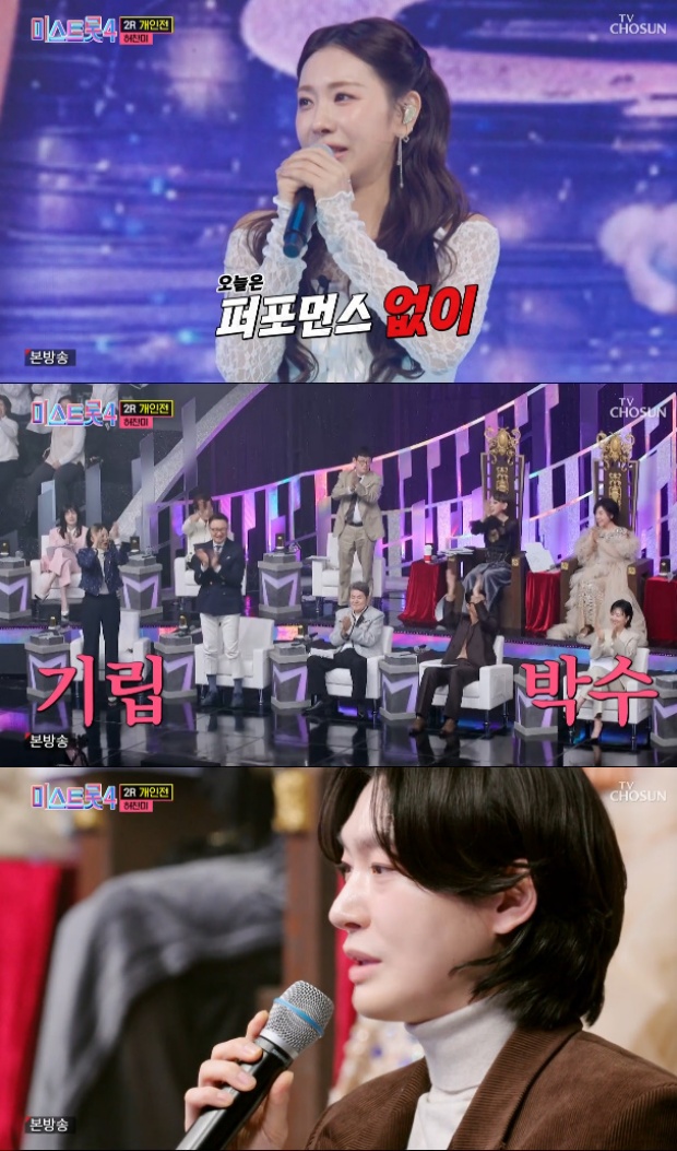 허찬미김용빈[티브이데일리한서율기자]'미스트롯4'에서가수허찬미가최고점을받았다.19일밤방송된TV조선예능프로그램'미스트롯4'에서는두번째개인전무대가펼쳐졌다.이날허찬미는"오늘은퍼포먼스없이노래로만승부하겠다"라고포부를드러냈고트로트장르의모든기술과매력을보여줘박수갈채를받았다.김용빈은"찬미가정통트롯을잘하는친구가아니라고생각했다.그편견을완벽하게깨버린것같다"라고평했다.주영훈역시"트로트를이렇게불러야한다는걸알려준것같다"라고칭찬했다.김연자는"너무잘해줬다.제노래가퍼포먼스할게많지않아서걱정했다.그가정통으로하고싶어서나에게왔다고했지만좋은자리까지올라왔기에그게필요할까싶었다.하지만너무잘해줬다"라고고마움을표했다.장윤정은"고맙다는이야기를하고싶다.이무대를하기까지얼마나어려웠을까싶다"라며미소지었다.허찬미는한명을제외한모두에게100점을받았으며총점1498점으로1위에등극했다.[티브이데일리한서율기자[email protected]/사진=TV조선'미스트롯4']김용빈|허찬미[Copyrightⓒ*세계속에新한류를*연예전문온라인미디어티브이데일리(www.tvdaily.co.kr)/무단전재및재배포금지]Copyright©티브이데일리.무단전재및재배포금지.
