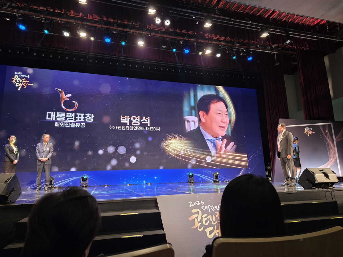 팬엔터테인먼트제공팬엔터테인먼트의박영석대표이사가‘2025대한민국콘텐츠대상’에서특별한영예를안았다.박영석대표이사는지난10일서울강남구코엑스에서열린‘2025대한민국콘텐츠대상’시상식에참석해해외진출유공부문대통령표창을받았다.그는오랜시간한류선두주자의자리를굳건히지켜온,우리나라의대표드라마제작사팬엔터테인먼트의대표이사다.팬엔터테인먼트(068050)는2002년한류열풍의시초인‘겨울연가’를필두로현재까지70편의드라마를제작,국내는물론전세계시청자들을사로잡은바있다.또한최고시청률40%이상을기록한‘해를품은달’을비롯해‘소문난칠공주’,‘찬란한유산’등을선보여왔다.올해3월에는넷플릭스시리즈‘폭싹속았수다’를제작,넷플릭스국내1위와글로벌TOP104위(비영어)로출발하며폭발적인반응을얻었다.이후글로벌TOP10시리즈(비영어)부문정상에오른데이어8주간TOP10을유지해눈길을끌었다.여기에상반기에약3500만시청수(총시청시간을작품러닝타임으로나눈값)를기록하며전세계를사로잡았다.팬엔터테인먼트제공‘폭싹속았수다’는‘제61회백상예술대상’4관왕,‘제4회청룡시리즈어워즈’3관왕,‘2025국제스트리밍페스티벌’글로벌OTT어워즈3관왕등올해열린콘텐츠시상식들에서연거푸최다부문후보작으로노미네이트되고,잇따른수상소식을전하며흥행과작품성을모두잡은작품으로인정받았다.예능으로의진출또한눈여겨볼만하다.최근방송한MBC‘신인감독김연경’을공동제작해신드롬을이끈것.이프로그램은배구여제김연경이감독으로나서신생배구단‘필승원더독스’를창단하는과정을담은리얼리티로,프로방출선수,실업팀선수,은퇴선수등배구계의숨은보석들이모여‘Under에서Wonder로’도약하는감동적인성장서사를그려내며시청자들에게깊은울림을선사했다.팬엔터테인먼트는드라마및예능사업뿐아니라,국내에서큰사랑을받았던신카이마코토감독의‘스즈메의문단속’,‘날씨의아이’,‘너의이름은.’의국내지식재산권을보유한미디어캐슬을인수했으며극장용영화‘바람’이후의이야기를그린‘짱구’제작에도참여했다.아울러‘8번출구’,‘국보’등을수입및배급하며본격적으로활동영역을넓히고있다.이처럼팬엔터테인먼트는단순히드라마장르에국한되지않고콘텐츠저변확대에앞장서며대한민국종합엔터테인먼트기업으로성장중이다.팬엔터테인먼트가명실상부한K-콘텐츠리더로자리매김할수있었던기저에는박영석대표이사가일궈온남다른사업력과탄탄한재정건전성이있었다.70여편의드라마를제작하는동안스태프와연기자들의권익보호에앞장서왔으며,2006년코스닥직상장후엔2024년벤처기업협회에서선정하는2024년‘벤처천억기업’에이름을올리는성과로귀결됐다.안병길기자[email protected]©스포츠경향.무단전재및재배포금지.