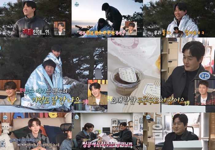 ‘나혼자산다’.사진|MBC웹툰작가기안84와데이식스(DAY6)도운의‘그지꼴(?)’브로맨스가펼쳐진다.30일오후10시30분방송되는MBC예능프로그램‘나혼자산다’(연출허항강지희김진경문기영)에서는기안84와데이식스도운의청계산우정등반현장과배우서범준이자신의롤모델인배우유지태와마주한모습이공개된다.기안84와도운은남다른브로맨스를선보이며큰웃음을선사할예정이다.새해에보지못한일출을보기위해청계산으로일출등반에나선두사람은체감온도영하20도에육박하는정상의추위속에서생존(?)을위한고군분투를펼친다.기안84는도운을위해준비해온보온병을건네고,도운은추위를녹이는따뜻한음료한모금에감동한다.도운이“율무차예요?”라고묻자,기안84는당황하며“커피인데?”라고답해폭소를자아낸다.이어도운은‘바들바들’떠는기안84를위해생존템(?)을꺼내는데,바로방한용은박담요다.그는먼저기안84에게담요를둘러주며형을살뜰히챙긴다.도운의스윗한면모에무지개회원들은감탄을터뜨린다.기안84와도운의필사적인노력에도눈조차녹지않은겨울산정상의매서운추위는더욱거세진다.도운은“내려가고싶었어요”라며당시의속마음을밝히는가하면,기안84는“북극이훨씬따뜻합니다.무슨얘기를했는지기억도잘안나요”라고말해웃음을유발한다.반짝이는은박담요를두르고덜덜떨며일출을기다리던중,도운은“우리둘다그지같아요”라며헛웃음을터뜨린다.과연기안84와도운이추위를이기고일출을맞이할수있을지본방송에관심이쏠린다.한편배우서범준이자신의영원한롤모델인배우유지태와마주한모습도공개된다.앞서서범준은10년전배우지망생이던시절,유지태와남다른인연을맺었던사연을공개한바있다.배우선후배로다시만난이들의만남에관심이집중된다.서범준은배우가된후한시사회현장에서유지태를만났던순간을전하며,이후유지태가찍은독립영화에출연까지했었다고밝혀모두를놀라게만든다.유지태는배우후배가된서범준에게“더멋있어졌구나?”라며반갑게맞이한다.서범준이좋아하는빵을한가득준비해그를향한남다른애정을드러낸다.또한서범준도직접발로뛰며모은빵선물을전하고,유지태는“이빵은진짜맛있게먹어야겠다.성공해서주는빵이니까”라며감격한다.코드쿤스트는“어떻게샀는지보면더감동하시겠다”라며빵선물에담긴서범준의진심에공감한다.서범준의빵선물속에는최근핫한디저트인‘두쫀쿠(두바이쫀득쿠키)’도담겨있어눈길을모은다.‘두쫀쿠’의맛을보는유지태를바라보며눈을떼지못하는서범준.과연유지태의반응은어땠을지관심이쏠린다.겨울산정상에서추위와맞서는기안84와도운의모습은30일오후11시10분방송되는‘나혼자산다’에서확인할수있다.[김소연스타투데이기자]Copyright©스타투데이.무단전재,재배포및AI학습이용금지