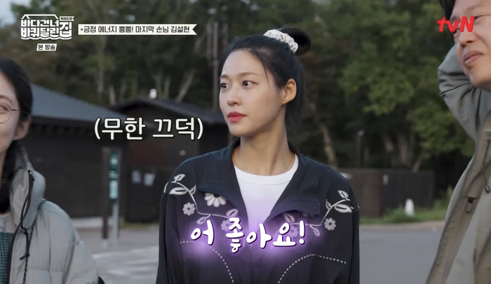 사진|tvN[스포츠서울|배우근기자]배우김설현이tvN예능프로그램‘바다건너바퀴달린집:북해도편’마지막여정의주인공으로나서며여행의대미를장식했다.긍정에너지와진정성있는태도로북해도여행의온기를완성했다.지난14일방송된‘바다건너바퀴달린집:북해도편’최종회에서는성동일,김희원,장나라와함께한김설현의마지막탐험기가펼쳐졌다.북해도시레토코를배경으로한이번여정에서김설현은흔들림없는밝은기운으로프로그램이추구해온힐링의정서를선명하게드러냈다.무려9시간에달하는장거리를이동해합류한김설현은“오는데되게좋았다.너무예뻤다”며이동의피로대신설렘을먼저전했다.장시간이동을미안해하는출연진을향해서도배려를잊지않으며여행의분위기를자연스럽게부드럽게만들었다.사진|tvN이동중“여기곰이나온다고하던데요?”라는김설현의말은실제곰모자를마주하는상황으로이어지며긴장감을끌어올렸다.이후여우와사슴까지연이어등장하며북해도자연의생생함이더해졌고,김설현은자연앞에서숨김없는감탄을드러내며여행의몰입도를높였다.다음날가장기대했던고래투어가높은파고로취소되는돌발상황이발생했지만,김설현은실망대신상황을담담히받아들이며팀의분위기를지켰다.이어온천폭포투어마저야생곰출몰로중단되는변수가이어졌음에도그는여행의흐름을긍정적으로이끌며중심역할을해냈다.식사준비를돕지말고쉬라는출연진의권유속에서김설현은혼자만의시간을즐기며네잎클로버찾기에나섰고,다섯잎클로버를발견하는뜻밖의장면이연출됐다.이는이번북해도여정이품고있던위로와회복의메시지를상징적으로보여주는순간이다.사진|tvN마지막만찬자리에서는시원한먹방으로분위기를살렸고,장작불앞에서이어진티타임에서는여행을돌아보며진솔한소감을전했다.꾸밈없는말과담백한태도는시청자에게도그대로전해지며프로그램의여운을깊게했다.김설현은드라마‘낮과밤’,‘살인자의쇼핑목록’,‘아무것도하고싶지않아’등을통해안정적인연기력을쌓아왔다.이번예능출연에서는자연스러운공감능력과긍정적인태도로배우로서의스펙트럼을또한번확장했다.현재는넷플릭스시리즈‘천천히강렬하게’촬영에한창이다[email protected]©스포츠서울.무단전재및재배포금지.