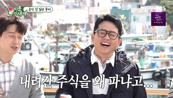 SBS‘미운우리새끼’캡처SBS‘미운우리새끼’캡처[뉴스엔유경상기자]김준호가주식을팔아서섬을사겠다는꿈에부풀었다.4월26일방송된SBS‘미운우리새끼’에서는김준호,허경환,최진혁,육중완이통영으로향했다.김준호는육중완에게“제가초대했다.지금설레죠?집에서육아탈출이런기분이있지않냐”고너스레를떨었고육중완은“아기가9살”이라며“저학년이라전쟁터”라고육아탈출에기뻐했다.김준호는“최진혁도엄마잔소리듣다가혼자나오니좋지않냐”고질문했고,최진혁은요즘들어잔소리가더심해진다“며인정했다.이어김준호는“신혼인데.아이를갖는과정에서집에계속있어서살이10kg쪘다.결혼할때75kg이었는데지금86kg이됐다.배를봐라”며“‘미우새’들을위해서통영에계속올명분을만들려고섬을하나알아봤다”고진짜통영에가려는이유를말했다.최진혁은섬을산다는게“너무허세아니냐”며의심했고,육중완은“아직모른다.난실제로섬을사려고했다.명분을만들기위해서.서울에서멀리떨어진해남이나고성이나”라고반응했다.차태현은“저건헤어질명분아니냐.저게무슨명분이냐”며실소했다.허경환이“돈없잖아요”라고꼬집자김준호는“지금내려간주식다빼면딱살수있는가격”이라고말했다.허경환은“멘트가썩었다.내려간주식을왜파냐.올라가면팔아야지”라며기함했다.김준호는“팔라고하더라”며“할리우드배우들이사는보라보라섬에서노후를즐기는게꿈이었다.가보면안다.거의보라보라”라고섬을사겠다는꿈을버리지못했다.이후이날방송말미에는이들이진짜배를타고섬을찾아가는모습이그려진상황.다음주방송을통해공개될섬의실체가무엇일지호기심을자극했다.뉴스엔유경상yooks@기사제보및보도자료[email protected]ⓒ뉴스엔.무단전재&재배포금지Copyright©뉴스엔.무단전재및재배포금지.