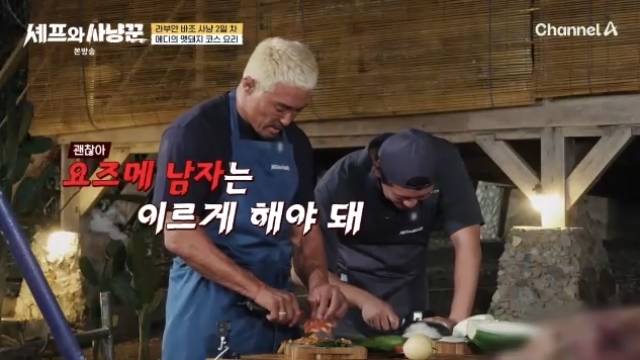 채널A‘셰프와사냥꾼’캡처채널A‘셰프와사냥꾼’캡처[뉴스엔서유나기자]격투기선수추성훈이소신발언했다.1월22일방송된채널A예능'셰프와사냥꾼'3회에서는인도네시아라부안바조에서야생의식재료를찾아헤매는에드워드리,추성훈,임우일,김대호그리고스페셜멤버경수진의생존미식탐험기가이어졌다.이날멧돼지사냥에성공한멤버들은다같이멧돼지를재료로요리를시작했다.이때김대호가칼질을하는걸본경수진은"오빠칼질왜이렇게잘하냐"며감탄했다.김대호가이에"20년을혼자살아서"라며강제습득한솜씨임을드러내자옆에서추성훈은"요즘남자들은이렇게해야된다"며"그치?"하고동의를구했다.김대호는"맞다"고수긍했다.뉴스엔서유나stranger77@기사제보및보도자료[email protected]ⓒ뉴스엔.무단전재&재배포금지Copyright©뉴스엔.무단전재및재배포금지.