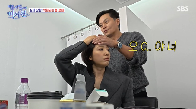 사진=SBS‘내겐너무까칠한매니저–비서진’캡처사진=SBS‘내겐너무까칠한매니저–비서진’캡처사진=SBS‘내겐너무까칠한매니저–비서진’캡처[뉴스엔이하나기자]박신혜가촬영중극심한컨디션난조로병원까지갔다.1월30일방송된SBS‘내겐너무까칠한매니저–비서진’에는박신혜가감기몸살로촬영중급격히컨디션이떨어지는모습을보였다.박신혜는일일매니저가된이서진,김광규에게목감기가걸렸다며약국에서프로폴리스를사다달라고부탁했다.이서진은“병원을가자.주사한대맞고오자”라고권했지만,박신혜는일단촬영에집중하기로했다.화보및콘텐츠영상촬영중박신혜는컨디션이급격히나빠졌다.급한대로이서진,김광규가사온약을먹었지만두통과오한증세까지보였다.박신혜의기침소리를듣고대기실에간이서진은“병원을가야지지금.밥먹으러가기전에병원을들르자”라고걱정했다.열도난다는말에박신혜의이마를짚은이서진은“이러니까몸이아프지.몸살기가있네.이거진짜병원을가야할것같다”라고말했다.박신혜는“아침에일어났을땐편도만좀부었구나생각했는데갑자기열이확올라서앞이안보이는거다.진짜표정관리가안되는거다.너무아프니까”라면서도아픈내색을내지않으려노력하며촬영을이어갔다.그사이이서진과김광규는근처진료가가능한병원을찾았다.이서진은“몸살인것같다.일단병원가서주사를맞아야할것같다.내가봤을때쟤38도나올것같다”라며“난조금아파도병원간다.나는지난주에병원3번갔다.그러니까감기가빨리낫는거다”라고말했다.촬영이끝난후두사람은박신혜를데리고병원으로갔고,열이37.6까지올랐던박신혜는치료를받고한결안색이밝아졌다.뉴스엔이하나bliss21@기사제보및보도자료[email protected]ⓒ뉴스엔.무단전재&재배포금지Copyright©뉴스엔.무단전재및재배포금지.