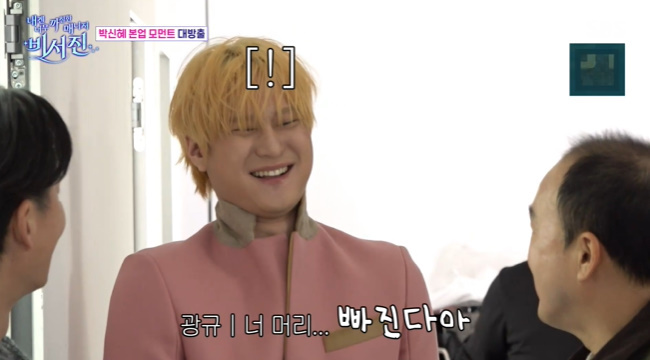 사진=SBS‘내겐너무까칠한매니저–비서진’캡처사진=SBS‘내겐너무까칠한매니저–비서진’캡처사진=SBS‘내겐너무까칠한매니저–비서진’캡처[뉴스엔이하나기자]김광규가과감한색깔로염색한고경표에게탈모를경고했다.1월30일방송된SBS‘내겐너무까칠한매니저–비서진’에서이서진,김광규는박신혜의일일매니저로나섰다.이서진는박신혜의패딩을빌려입고김광규와함께약국으로갔다.패딩주머니에서헤어롤을발견한이서진은“이거좀말래?”라고말했다.발끈한김광규는“한번말아봐라”고반응했지만,헤어롤로정전기를실험하는것같은상황이연출됐다.제작진이“머리에꽂고가면너무귀여울것같다”라고추천하자김광규는“안꽂힌다”라고버럭했다.이서진도“꽂혀야꽂지.사람두번죽이네”라고지적했다.박신혜가단독촬영을하는동안이서진은고경표와인사를나눴다.이서진이“머리왜이렇게노랗게했어”라고묻자,고경표는“기분전환겸.마지막촬영끝나고바로가서했다”라고말했다.이때김광규는“너머리빠진다.염색함부로하면”이라고경고했다.이서진은“독한약쓰면이렇게된다.마흔넘으면하면안돼.두피약해져.다빠져”라고거들었다.뉴스엔이하나bliss21@기사제보및보도자료[email protected]ⓒ뉴스엔.무단전재&재배포금지Copyright©뉴스엔.무단전재및재배포금지.