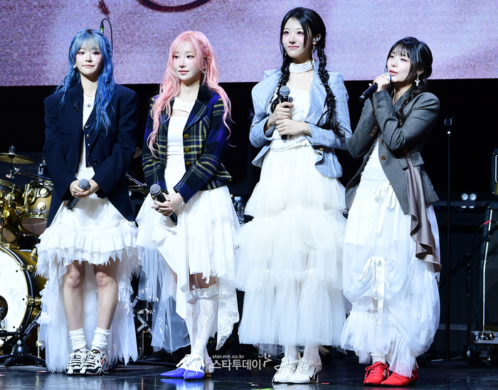 [스타뉴스|윤상근기자]그룹QWER이27일서울서대문구예스24원더로크홀에서진행된네번째미니앨범'CEREMONY'발매기념쇼케이스에서포즈를취하고있다./2026.04.27/사진=김휘선hwijpg@'최애걸밴드'QWER(큐더블유이알,쵸단마젠타히나시연)이새챕터를열며대세걸밴드로거듭나기위한포부를멋지게선사했다.QWER(쵸단마젠타히나시연)은27일서울신촌예스24원더로크홀에서컴백쇼케이스를열었다.QWER은이날오후6시주요음원사이트를통해미니4집'CEREMONY'를발매한다.타이틀곡'CEREMONY'는'세상의틀에서벗어나나답게살아가겠다'라는다짐을기념하고,축하하는의미를담은곡이다.QWER특유의통통튀는밴드사운드와긍정적인메시지가어우러져리스너들에게밝은에너지를전할예정이다.음원과함께공개되는뮤직비디오에는예기치못하게현실세계와동떨어진공간에떨어진QWER의모습이담긴다.본인들의세계로돌아가기위한네멤버의고군분투가그려지는가운데,반전넘치는전개로몰입도를높일전망이다.이외에도'CEREMONY'에는타인의시선을신경쓰지않는당찬캐릭터를그려낸'BADHABIT',꿈속에서라도만나고싶은대상을'바니'라는애칭으로사랑스럽게풀어낸'바니바니',불안한마음도함께라면빛나는내일이올것이라는희망을노래한'OurVoyage',새로운챕터를향한자신감과다짐을개척자의모습에비유한'PIONEER'등총5곡이수록됐다.'CEREMONY'는QWER이데뷔싱글'HarmonyfromDiscord'부터미니3집'난네편이야,온세상이불협일지라도'까지이어온첫번째챕터를마무리하고,다음단계로의도약을알리는앨범이다.'식(式)'의의미를담아팀으로서의정체성과,개인으로서의자아를찾는여정을통해미래로나아갈것을다짐한다.멤버전원이곡작업에참여해진화된음악적역량을입증할것으로기대된다.그룹QWER이27일서울서대문구예스24원더로크홀에서진행된네번째미니앨범'CEREMONY'발매기념쇼케이스에서멋진무대를선보이고있다./2026.04.27/사진=김휘선hwijpg@이날QWER은"10개월기다려준팬들에게감사하다.앨범제목처럼모두가축하받는느낌을받았으면좋겠다"라며"새로운챕터의QWER을보여드리고싶다.그동안내공이쌓인우리의음악을보여드릴것"이라고말했다.QWER은"준비하며긴장됐고설렜다.본격적으로우리의세리모니를시작하는순간"이라며첫무대를마친소감을전했다.이어"챕터1로우리의서사를잘완성했고멤버들모두작업에참여한만큼더뜻깊은앨범이될것같다"라며"이전챕터로우리의자아와정체성을찾았다.월드투어이후무대의완성도와퍼포먼스에서더성장했다.팀적으로많이달라졌고호흡도잘맞았다.여유도많이생겼다.작사에도많이참여해서자신감도많이얻었다"라고입을모았다.QWER은"기억에남는세리모니라면일정이후우리끼리각자축하하기위해축하주도마시고소소하게즐겼다.이전보다모두적극적으로곡작업에참여했고정신적,체력적으로많이투어를통해배웠고아티스트로서많이성장했다"라고말했다.QWER멤버들은새챕터에대한생각을전했다.시연은"예전챕터에서의우여곡절을거쳤고이번챕터로도원결의를맺고비장한의지를보여드리고싶다"라고말했고히나는"어리숙한모습에서벗어나팀적으로어떤세계를마주하더라도당당하게나아가겠다는출사표를던지고싶다"라고말했다.마젠타는점화,쵸단은질주라고정의했다.QWER은"모두를축하해줄수있었으면좋겠고축하받는모든자리에우리노래가많이불렸으면좋겠다.음악방송1위도해서우리만의세리모니도보여드리고싶다"라며"음원차트1위도하게되면사연을받아깜짝축하하는자리를마련하고싶다"라고말했다.QWER은이와함께"썸머소닉페스티벌무대에도서고싶다"라고덧붙이며"데뷔이후다양한장르에도전했고안해본장르가없을때까지도전하겠다"라고글로벌밴드로거듭날것임을전했다.윤상근기자[email protected]©스타뉴스&starnewskorea.com,무단전재및재배포금지
