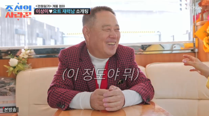 '조선의사랑꾼'27일방송TV조선'조선의사랑꾼'화면캡처(서울=뉴스1)이지현기자=이상미가요트를보유한재력남을만났다.27일오후방송된TV조선예능프로그램'조선의사랑꾼'에서는드라마'전원일기'개똥엄마배우이상미가새로운사랑을찾기위해소개팅에나섰다.그가요트앞에서소개팅남을만난뒤"이런데이트처음이다"라고솔직히말했다.소개팅남이"한번타보겠나?올해처음운행하는것"이라며이상미를태웠다.이내요트가한강위를달려이목이쏠렸다.TV조선'조선의사랑꾼'화면캡처소개팅남정체가공개됐다.그는"김원길이다.나이는66세"라며자기소개했다.특히500억매출이라고전해진신발업체대표라고해놀라움을줬다.이른바'자수성가재력남'인김원길대표가명함을건네며"난구두장이다"라고밝혔다.이상미가배우라고자기소개했다.그러면서"어떻게구두사업했나?"라고물었다.소개팅남이성공담을설명했다."어릴때뭘먹고살지고민이많았다.농장일도해보고그러다가구두만드는기술배우면먹고사는데지장이없겠더라.18살때서울에올라와서하숙집전전하며살았다"라고회상했다.이를들은이상미가"자수성가하셨구나.구두외길을걸어왔는데,그렇게해서성공했다는거아니냐?"라고했다.소개팅남이"남들이그렇게얘기하더라"라며겸손하게얘기해눈길을끌었다[email protected]©뉴스1.Allrightsreserved.무단전재및재배포,AI학습이용금지.