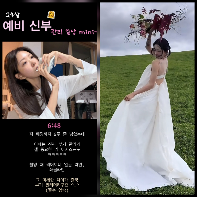 故최진실의딸최준희가결혼을앞두고현실적인관리일상을공개했다.최준희는28일자신의SNS를통해“저웨딩까지2주좀남았는데이때는진짜부기관리가제일중요하다”고밝혔다.이어“촬영때겪어보니얼굴라인이나쇄골라인에서미세한차이가크게느껴지더라”며“결국부기관리가핵심”이라고강조했다.특유의밝은말투로“ㅋㅋㅋㅋ”를덧붙이며예비신부의솔직한심정을전했다.故최진실의딸최준희가결혼을앞두고현실적인관리일상을공개했다.사진=최준희SNS공개된영상에서는직접관리루틴을이어가는모습도담겼다.결혼식을앞두고짧은기간동안변화를만들어야하는만큼,사소한붓기까지신경쓰는현실적인준비과정이눈길을끌었다.한편최준희는11세연상의비연예인연인과오는5월16일결혼식을앞두고있다.이날혼주석에는친오빠인가수지플랫(최환희)이자리해동생의새출발을함께할예정이다.[김승혜MK스포츠기자][ⓒMK스포츠,무단전재및재배포금지]Copyright©MK스포츠.무단전재및재배포금지.