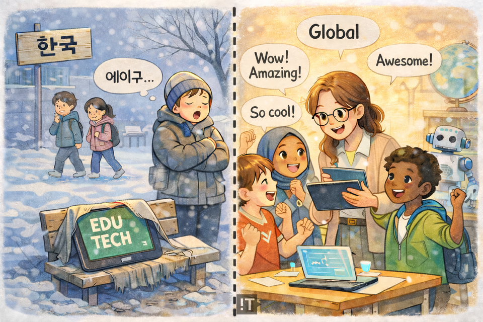 국내에듀테크기업들이해외로눈을돌리고있다.인공지능(AI)활용을적극추진하는해외정책기조와달리,국내에서는공교육내AI활용이위축되면서글로벌전시회와해외시장이사실상대안으로부상하고있다.국내에듀테크기업들이해외로눈을돌리고있다./챗GPT생성28일교육업계에따르면아이스크림미디어,아이포트폴리오,팀모노리스등국내에듀테크기업들이23일(현지시각)까지영국런던에서진행된세계최대교육기술전시회'BETTUK2026(이하벳쇼)'에참가했다.대한무역투자진흥공사(KOTRA)지원한국관에는로보라이즌,큐브로이드,로보메이션,스팀업아카데미,네오피아등이참여해STEAM(과학·기술·공학·수학)교육과로봇·코딩솔루션을선보였다.삼성전자도벳쇼현장에서AI학습환경을구현한교육용디바이스와디스플레이솔루션을전면에내세우며에듀테크생태계선점전략을강조했다.이들기업은AI기반학습플랫폼,코딩교육솔루션,디지털영어콘텐츠등을앞세워유럽공교육시장과B2B(기업간거래)교육수요를겨냥하고있다.반면같은시기국내에서열린'대한민국교육박람회'에서는전통교육기업들이예년과달리단독부스참가업체로이름을올리지못했다.천재교과서·교육,비상교육등기업은KTA한국교과서협회공동전시관한편에자리를마련하는데그쳤다.AI디지털교과서(AIDT)가교육자료로지위가변경되며사업규모가대폭축소된영향으로풀이된다.비상교육등일부기업은벳쇼에서도한국공동관형태로참여했다.두행사에서모두부스를차린기업또한전략을다르게펼쳤다.일례로아이스크림미디어는국내교육박람회에서는교사용AI솔루션을전면에내세운데반해,벳쇼에서는단독부스로글로벌학습플랫폼'루미티치'를메인으로소개했다.글로벌시장확장을올해주요전략으로세웠다는게회사측설명이다.업계에서는국내에듀테크시장의불확실성이커지면서주요기업들이해외전시와수출을사실상돌파구로삼고있다는분석이나온다.국내교육박람회는주타깃이국내시장관계자이며인근국가의바이어가소수방문하는수준인반면,해외교육박람회는전세계주요시장의잠재고객을만날수직접만날수있고최신트렌드와동향을파악할수있는장이라는점에서차이가크다는설명이다.에듀테크업계한관계자는"한국은공교육과사교육시장의구분이엄격하고생태계가매우다른반면,해외는주로학교유형(공립또는사립)에따라시장이형성된다"며"특히한국과같은형태의사교육시장은해외에서드문만큼,글로벌관점에서의사업개발이필수"라고설명했다.김경아기자[email protected]©IT조선.무단전재및재배포금지.