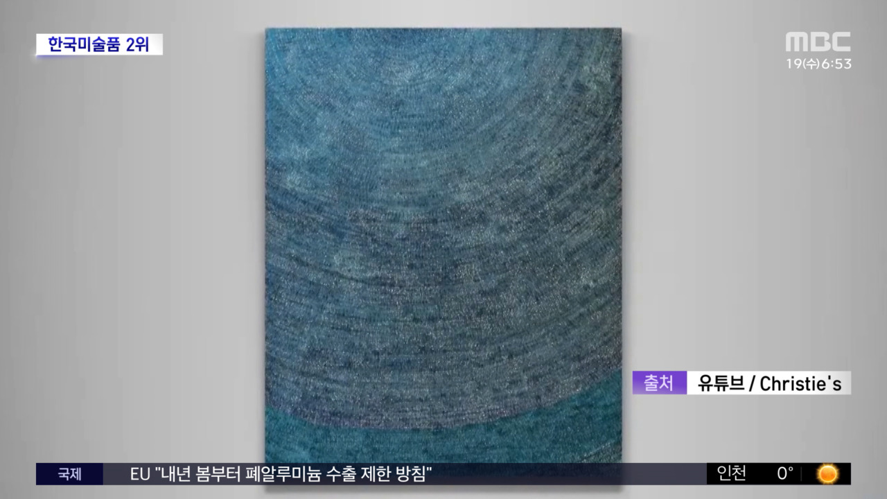 [뉴스투데이]한국추상미술선구자김환기의작품이뉴욕경매에서약123억원에낙찰됐습니다.현지시간17일미국뉴욕에서열린'크리스티20세기이브닝세일'에서,김환기의1971년작전면점화가840만달러,우리돈약123억원에낙찰됐는데요.이는2019년크리스티홍콩경매에서약132억원에낙찰돼,한국미술품경매최고기록을세운자신의또다른작품'우주'에이어,한국미술작품경매역사상두번째로비싼가격입니다.이번에낙찰된전면점화는화면에방사선형태로확산하는점들이우주로팽창하는듯한무한한공간감을표현한작품으로,'우주'와같은1971년에제작됐습니다.MBC뉴스는24시간여러분의제보를기다립니다.▷전화02-784-4000▷이메일[email protected]▷카카오톡@mbc제보김옥영리포터기사원문-https://imnews.imbc.com/replay/2025/nwtoday/article/6776877_36807.htmlCopyright©MBC&iMBC무단전재,재배포및이용(AI학습포함)금지