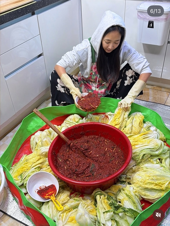 [스타뉴스|김정주기자]/사진=진재영인스타그램배우진재영이생에첫김장에도전했다.진재영은18일자신의인스타그램에"딸은도둑이라고맨날엄마김치얻어가기만하다가엄마가가르쳐준첫김장"이라는글과함께김장을하는모습이담긴사진을여러장게재했다.공개된사진속진재영은화장기없는수수한모습에후드티셔츠를입고김장소를휘젓고있다.그는절인배추에김칫소를버무리며미소짓는가하면모친이건네준갓담은김치를받아먹으며진실의미간을찌푸리고있다.진재영은"내가혼자할수있을진모르겠지만배추뜯어돌돌말아싸주는엄마의손맛은잊지못해.엄마앞으로30년은더해줘.마지막은역시굴"이라고남겼다./사진=진재영인스타그램이를본누리꾼들은"김치사업해도될듯","엄마김치가최고다"등의댓글을남겼다.한편진재영은지난2010년4세연하프로골퍼진정식선수와결혼해제주도에서생활중이다.그는과거한방송에서온라인쇼핑몰을통해매출200억원을벌었다고밝혀화제를모았다.김정주기자[email protected]©스타뉴스&starnewskorea.com,무단전재및재배포금지