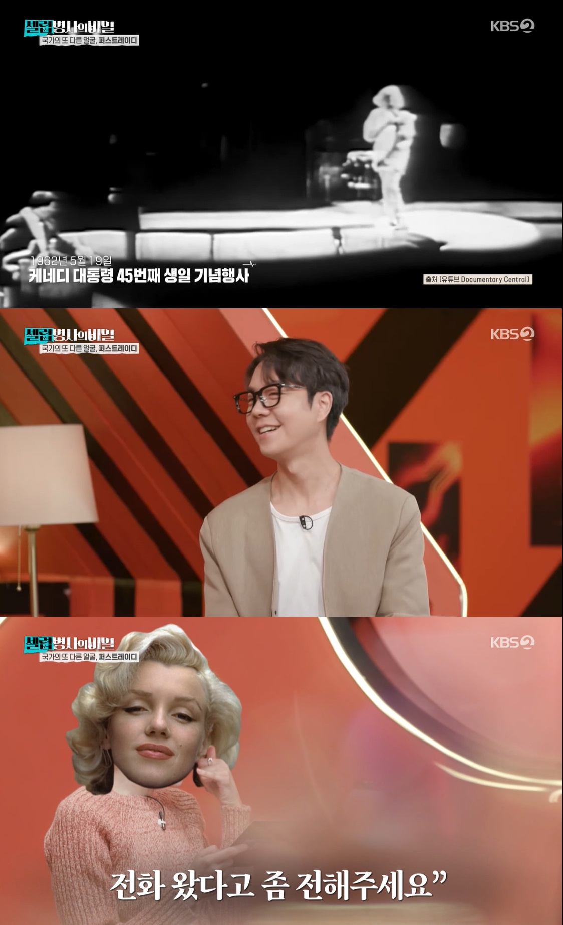 [스타뉴스|안윤지기자]/사진=KBS2TV'셀럽병사의비밀'방송캡처'셀럽병사의비밀'할리우드배우마릴린먼로와미국전대통령존F.케네디와불륜의혹이전해졌다.18일방송된KBS2TV'셀럽병사의비밀'에서는미국전대통령존F.케네디부인재클린케네디와아르헨티나전대통령인후안도밍고페론의부인에바페론에대한이야기를나눴다.김지윤박사는"영부인재클린은슈퍼스타였다.웬만한여배우보다잡지에더많이실렸다"라고소개했다.정일우는"근데현실은이렇게아름다웠을까.케네디한테는유명한스캔들이있었다.마릴린먼로다"라고말했다.마릴린먼로의생일축하영상을본이찬원은"누가대통령생일축하노래를저렇게끈적하게부르냐"라고했다.정일우는"재클린은두사람의관계를알고있었다.전화한통을받았는데마릴린먼로였다.호칭도문제였는데대통령침실번호를어떻게알았나.여자의촉이있다"라고전했다.한편'셀럽병사의비밀'은매주수요일오후8시30분에방송된다.안윤지기자[email protected]©스타뉴스&starnewskorea.com,무단전재및재배포금지