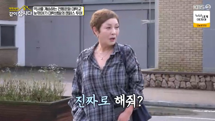 KBS2TV‘박원숙의같이삽시다’KBS2TV‘박원숙의같이삽시다’KBS2TV‘박원숙의같이삽시다’KBS2TV‘박원숙의같이삽시다’[뉴스엔하지원기자]‘써니’홍진희,대학가깜짝방문‥화끈한명대사팬서비스'써니'홍진희가화끈한팬서비스를선보였다.11월17일방송된KBS2TV'박원숙의같이삽시다'(이하'같이삽시다')에서사공주는캠퍼스로망을안고대학교에방문했다.박원숙은"오늘은특별한사람을만나서특별한대화도나누고또대학에대한로망도있었을거아니냐"라고말문을열었다.혜은이는"난대학을못가서로망이많다"며기대감을내비쳤고황석정은"그럼나는미팅안해봤는데시켜달라"라고했다.그러자홍진희는"미팅주선자로나서겠다"며자신있게말했다.이어홍진희는학생들을만나"황석정미팅주선자다.혹시선배들중에늙수그레한학생없냐"는돌발질문으로웃음을안겼다.대학생들은영화'써니'에출연했던홍진희를단번에알아봤다.학생들이"진짜좋아하는영화다"라고하자홍진희는"나거기서욕쟁이다.욕한번날려줄까?야이XXX들아"라고전해폭소를자아냈다.황석정이깜짝놀라자혜은이는“영화명대사를다시해준거다”라며상황을설명했다.홍진희가“너도욕한번해줄까?”라고묻자황석정은“밥먹고하면안되겠냐.밥먹기전에욕먹는건싫다”라고너스레를떨었다.뉴스엔하지원oni1222@기사제보및보도자료[email protected]ⓒ뉴스엔.무단전재&재배포금지Copyright©뉴스엔.무단전재및재배포금지.