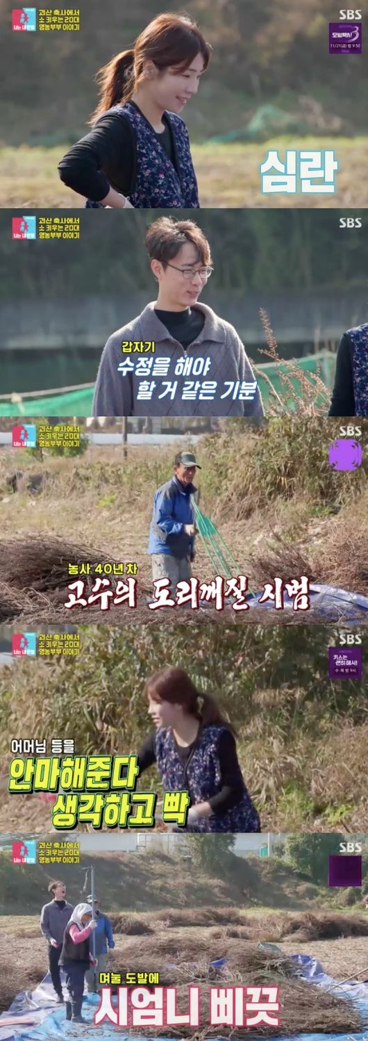 방송시청후작성된리뷰기사입니다.[OSEN=임혜영기자]천혜린이고부갈등으로유쾌한웃음을선사했다.17일방송된SBS예능'동상이몽시즌2–너는내운명‘(이하동상이몽2)에서는배우태항호가스페셜게스트로출연한가운데,‘영농재벌2세’신승재,천혜린부부의일상이공개되었다.이날신승재는소인공수정을하다다친다리를끌고깨밭을찾았다.신승재는“다손으로털어야한다”라며심란한마음을드러냈다.천혜린은“시집와서이런것도해본다”라며한숨을쉬었다.곧신승재의부모님이깨밭에등장했다.도리깨질을하던천혜린은“어머님등을안마해준다고생각하고”라며깨를실컷때렸고,신승재는“스트레스풀어라”라고거들었다.천혜린은시어머니에게시합을하자고도발하기도.천혜린은치킨을걸자고제안했고시어머니는“집에있는닭이나잡아먹어라”라며백숙을제안했다.역도선수출신인‘최강장사’며느리와50년경력농사베테랑시어머니의시합에모두가집중했다.승자는시어머니.열심히깨를턴이들부부는깨두말에18만원밖에안된다는말에“(소)수정이나하겠다”라며실망한반응을보였다.이후백숙을먹기위해모인이들가족.시어머니가백숙을맛있게해놓았으나천혜린은배달시킨피자를꺼내들었다.피자를좋아하는시어머니를위해특별히주문한것.이에시어머니는"피자가맛있지"라며기뻐했다.하지만화목한분위기도잠시,시어머니의잔소리가시작되었고천혜림은신승재의아픈다리를툭툭치며뭐라도말해보라고눈치를줬다./[email protected][사진]SBS예능'동상이몽시즌2–너는내운명‘Copyright©OSEN.무단전재및재배포금지.