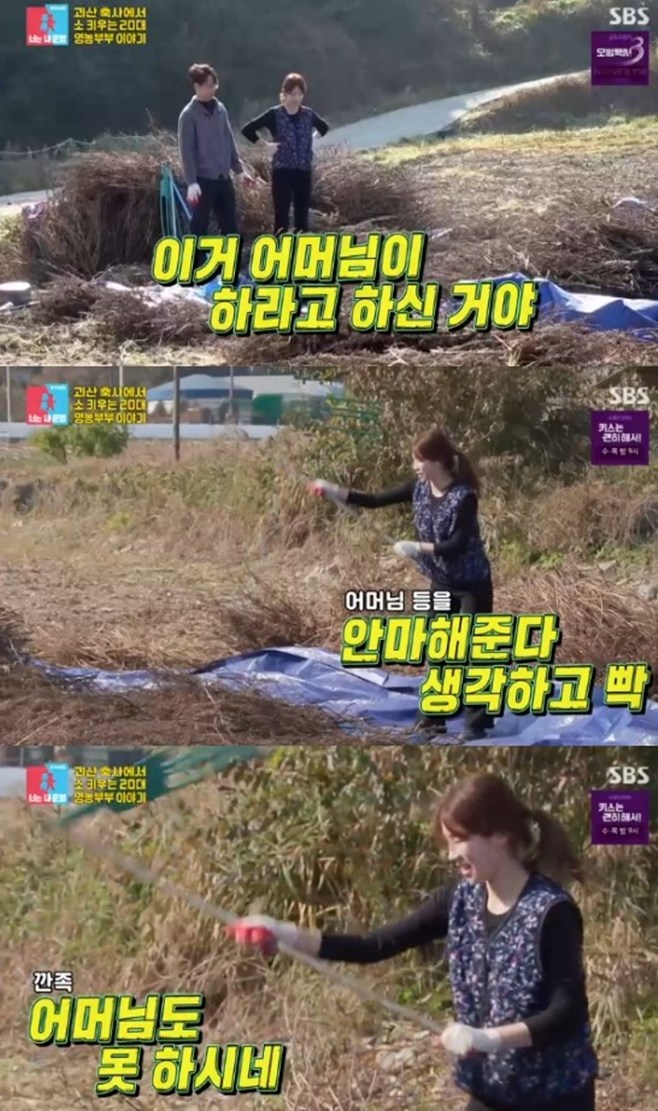 티브이데일리포토[티브이데일리이기은기자]'동상이몽2'천혜린,MZ며느리는달랐다.17일방송된SBS예능프로그램'동상이몽2-너는내운명'에서는영농후계자신승재천혜린부부일상이공개됐다.이날방송에서신승재는다리를절뚝거리는모습으로등장해걱정을샀다.신승재는"(인공수정을하다가)소한테뒷발로맞았다.방심하면다친다.찰나의순간이었다"며평소일상을설명했다.두사람은영농후계자인만큼평소농사에모든시간을할애했다.들깨털기는기계가아닌도리깨로직접털어야하는식이었다.시어머니는며느리에게들깨터는방법을잔소리했고,이를듣던천혜린은"어머님등을안마해준다고생각하고빡!"이라고말하면서도리깨를내리쳐모두를놀라게했다.그런가하면천혜린은식사를하던중시아버지를바라보면서"머리많이자라셨는데?옆에머리없으셨잖아요.그때키위새같다고했었는데"라고말해모두를폭소케했다.[티브이데일리이기은기자[email protected]][Copyrightⓒ*세계속에新한류를*연예전문온라인미디어티브이데일리(www.tvdaily.co.kr)/무단전재및재배포금지]Copyright©티브이데일리.무단전재및재배포금지.