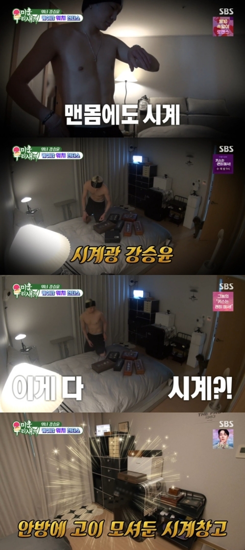 ‘미운우리새끼’사진|SBS강승윤이‘미우새’에합류했다.16일오후방송된SBS예능프로그램‘미운우리새끼’(이하‘미우새’)에는새로운미우새로위너의강승윤이일상을공개했다.이날방송에서시계를광적인취미로모으는강승윤은결혼한사람을위해의미있는선물을하고싶다며빈티지시계상점을찾았다.그러면서그는물시계를찾더니1950년대스위에서만든시계를보고감탄했다.그외에도새장시계등특이한시계를보자마자그는눈을떼지못하기도.그는시계를여러개차보더니“이런건가격이어떻게형성되어있냐”고물었다.그러나생각보다상당히높은가격에헛웃음을지으며“이게진짜무브먼트다.앞에서보면조금심플한데이게아트다!”라고칭찬했다.전문가는또다른시계를추천하며했지만강승윤은높은가격에“다데려가고싶은데갑자기큰금액을쓰는건무리고이제품을구매하겠다”라며다른빈티지시계를샀다.‘미운우리새끼’는일요일오후9시5분SBS에서방송된다.[서예지스타투데이객원기자]Copyright©스타투데이.무단전재,재배포및AI학습이용금지