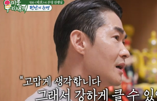 SBS'미운우리새끼'16일방송'미운우리새끼'방송캡처(서울=뉴스1)황예지기자='미운우리새끼'모델겸배우배정남이무당점사를통해힘겨웠던성장기및깊이묻어둔가족의상처와마주했다.16일오후방송된SBS예능'미운우리새끼'에서는배정남과모델겸방송인한혜진이무당을찾아점을보는모습이공개됐다.무당은배정남의맥을짚은뒤"한많은남자다,부모도형제도한이많고가슴에박힌못이너무크다"고말문을열었다.이어"사주자체가고아사주다,부모가있어도이별할수가있고,남의부모를섬기는운명"이라고설명했다.또"학교시절맞아도아프단말도못하고버틴건살아남기위해서였다"며그가견뎌온시간을짚어줬고,배정남은"약해보이기싫었다"고털어놨다.무당은배정남이어린시절죽을고비를여러번넘겼다며안타까움을드러냈고"사고와상처가많았지만,내년에는사업이크게트인다"고길운을전했다.이날배정남은어린시절병원비조차아껴야했던현실,중학교시절외톨이로지냈던고통등을떠올리며힘겨웠던시간을고백했다.이어무당은"이집안에술좋아하는분이있다,아버지가산소에오라고하신다"고말했다.배정남은친척들과의인연이끊기며아버지산소에6년째가지않았다고털어놓았다.그러자무당은갑자기노래를부르며"아들이너무보고싶었다,너무미안했다"고전했고,마치아버지가빙의된듯배정남과악수했다[email protected]©뉴스1.Allrightsreserved.무단전재및재배포,AI학습이용금지.