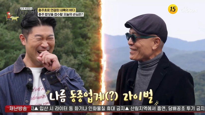 TV조선‘식객허영만의백반기행’캡처TV조선‘식객허영만의백반기행’캡처[뉴스엔장예솔기자]허영만이동종업계라이벌최자를견제했다.11월16일방송된TV조선'식객허영만의백반기행'에서는최자와함께충청북도충주로떠났다.이날최자는허영만을향해"잘지내셨냐"고안부를물으면서도"이렇게늦게불러주시다니"라고서운함을토로했다.허영만은"보통라이벌이어야빨리부르지.우리가동종업계라이벌아니냐"고너스레를떨었다.최자는현재본인의이름을건미식콘테츠'최자로드'진행을맡고있다.누적조회수2,600만회를돌파한'최자로드'에서최자는개코,조정석,이민정등절친한동료들과함께전국방방곡곡맛집을탐방했다.허영만의극찬에최자는"저는원래음악하는사람이다"고부끄러워해웃음을자아냈다.뉴스엔장예솔imyesol@기사제보및보도자료[email protected]ⓒ뉴스엔.무단전재&재배포금지Copyright©뉴스엔.무단전재및재배포금지.