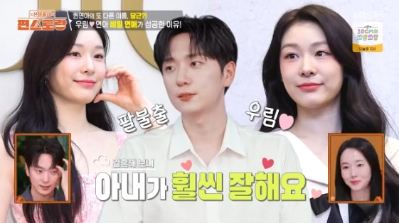 [스타뉴스|김정주기자]/사진=KBS2TV예능프로그램'신상출시편스토랑'그룹포레스텔라의멤버들이김연아를부르는애칭이공개됐다.14일방송된KBS2TV예능프로그램'신상출시편스토랑'에는포레스텔라멤버들을위해특별한코스요리를준비하는막내고우림의모습이그려졌다.이날고우림은첫번째요리로감자과자와당근을이용한애피타이저를완성했다.멤버들은당근을보자마자"러브스토리를담은음식이겠다"며고우림과김연아의연애사를언급했다.리더조민규는남들모르게김연아를부르는애칭을'당근'으로정하게된비하인드스토리를공개했다.그는"초반에두사람이연애할때3년간비밀을지켰다.우리도그분에대한얘기를해야할거아니냐.우리만있는게아니라스태프들도같이있으니명칭을하나만들어야하는데아무도그분을연상시키지않는단어여야했다.고민하다가생각해낸게당근이었다"라고털어놨다.강형호는"저는휴대폰에아직도당근이라고저장돼있다"라고말했고,조민규는"그걸그렇게오래사용할줄몰랐다"라고놀라워했다./사진=KBS2TV예능프로그램'신상출시편스토랑'그런가하면멤버들은김연아의요리실력을추켜세워눈길을끌었다.배두훈이"우림이나당근이나요리를잘하는것같다"라고입을열자강형호는"김연아가만든김치볶음밥간이딱맞더라.청담동에서파는것보다맛있었다"라고감탄했다.이에고우림은"김치볶음밥이간단한것같더라도맞추기가쉽지않다.제가더잘하는줄알았는데저보다더잘하더라"라고팔불출면모를보였다.김정주기자[email protected]©스타뉴스&starnewskorea.com,무단전재및재배포금지
