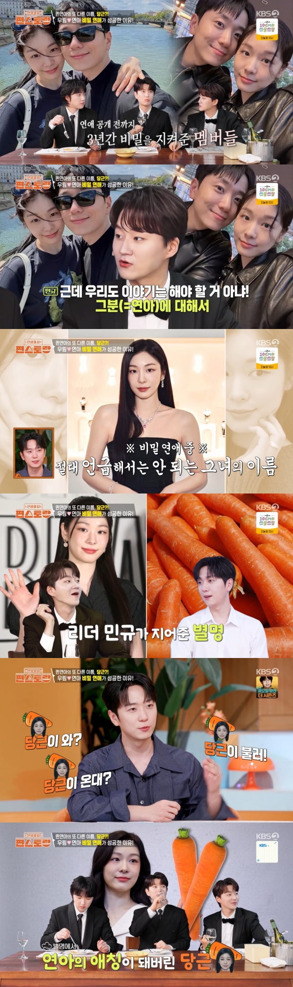 편스토랑화면캡처포레스텔라가비밀연애중김연아를불렀던애칭을공개했다.14일방송된KBS2TV‘신상출시편스토랑’에는고우림이데뷔8주년을맞아형들에게김연아에게인증받은음식을대접하는모습이그려졌다.이날정장을차려입고등장한포레스텔라에게‘꽈당샐러드’를대접한고우림에민규는“러브스토리를담은음식일수있겠다.하필처음부터왜당근이나오나했다.우리가초반에연애할때3년을비밀을지켰잖아.우리도그분에관해얘기는해야하는데,늘스태프가같이있으니까.명칭을하나만들어야하는데,연상안될단어가뭘까하다가생각한게당근”이라고밝혔다.리더민규가지어줬다는애칭당근.형호는“저는카톡방에아직도당근이라고되어있다”고밝혔고,두훈도공감했다.고우림은“요즘도귀엽게당근이라고부를때가있다”고밝혔다.포레스텔라는김연아의나폴리탄파스타랑김치볶음밥을극찬했다.민규는특히김치볶음밥에대해“청담동에서파는것보다더맛있다”고말했고,고우림은“감이다른것같다”며팔불출면모를드러냈다.편스토랑화면캡처편스토랑화면캡처이소진기자[email protected]©스포츠경향.무단전재및재배포금지.