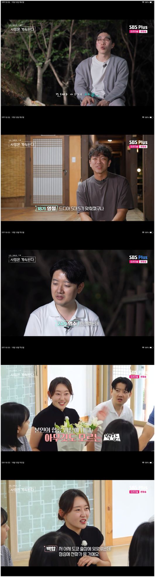 <리뷰:방송시청후작성된리뷰기사입니다.>[OSEN=오세진기자]‘나는SOLO,그후사랑은계속된다’메기백합의등장에서서히마음이바뀌는남성출연자들이속출한가운데24기영식이0표를달성해폭발했다.13일방영한ENA,SBSPlus예능‘나는SOLO,그후사랑은계속된다’(이하‘나솔사계’)에서는메기백합이등장했다.우아한외모에시원시원한성격그리고물흐르듯출연자들사이에녹아들며친화력을뽐내는백합의매력에남성출연자는물론여성출연자들까지흠뻑빠져들었다.백합은“1994년생이다.저는청주에서왔다.문구유통업을12~13년을하다가인터넷쇼핑몰도운영을하면서지금은법인회사대표다”라면서“저는유통때문에서울을오간다.그리고청주여서지방에계신분도괜찮다.그리고제가청주를알리는홍보대사로도일하고있다”라고말했다.부모님사업을물려받아아래서부터시작한그는사업체를크게만든인재였다.이어그는이곳에출연한이유로“그리고저는아기를갖고싶다.남편될분을못만나서,만나서빠르게아기를갖고싶다”라고말해모두를깜짝놀라게했다.삼남매인그는아이를셋을낳고싶다고강조해또한번사람들을놀라게했다.이어백합은“저는이상형으로배울점이있는사람이면좋겠다.나이차이는농담삼아위아래10살이라고하지만,연상을더선호하고일단삼십대면좋겠다”라며이상형을밝혔다.그는대화중에“제가또요리를잘한다.우리집김치로끓인김치찌개는진짜맛있지만시판김치는모르겠다.제가끓여드리겠다”라고말해출연자들을술렁이게만들었다.출연자중요리를잘하는사람이거의없었던것이다.백합은시원시원한손맛으로김치찌개를뚝딱완성했다.거기에다"우리2박3일재미있게지내요"라며먼저분위기를이끌기도했다.튤립은“백합한테다들질문을엄청나게하시더라.판이뒤집어지겠구나,내존재감이없어지겠구나,싶었다”라며감탄했다.그런백합의마음을먼저이끈건24기영수였다.24기영수의'이문열'에대해아는짧은면모에서그는배울점이있는남자라고여긴것이었다.백합에대해호평하던27기영호와영식은그래도장미에게로마음을굳혔으나,장미는27기영식을골랐다.용담과국화는27기영호를골랐다.24기영수는그대로혼자가되었다.24기영식은“분명저를괜찮다고하셨는데,지금은괜찮지만감정이북받쳐오를것같다”라며꾹꾹참는모습을보였다.이내24기영식은혼자술을빠르게마시더니어디로전화를걸었다.바로24기옥순이었다.24기영식은“24기옥순누나야,나는솔직히팬심에서라도한표줄줄알았어!네가꽃뱀이어도물려주려고했다고!”라며외쳤다.이에24기옥순은“넌악귀가씌어야해”라며조언해그의'흑화'를기대하게만들었다./[email protected][사진출처]ENA,SBSPlus예능‘나는SOLO,그후사랑은계속된다’Copyright©OSEN.무단전재및재배포금지.
