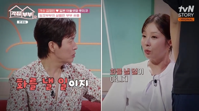 tvNSTORY‘각집부부’캡처tvNSTORY‘각집부부’캡처[뉴스엔서유나기자]가수김정민이아들의손목부상소식을뒤늦게알린아내루미코에게버럭했다.11월13일방송된tvNSTORY예능'각집부부'11회에서는일본에서재회한김정민,루미코부부의모습이그려졌다.이날루미코가부탁한짐을김정민이서울집에놓고오면서김정민,루미코부부의말다툼이벌어졌다.김정민은본인탓을하는루미코에게"루미코도나한테말제대로안해주지않냐"며지난서운함을토로했다."태양이손목부러졌다고(말안해줬다)"는것.앞선'각집부부'녹화쉬는시간당시휴대전화를확인한루미코는깜짝놀라"태양이수술이래"라고김정민에게전했다.처음듣는말이라는듯덩달아놀라는김정민에게루미코는"손목다쳤잖나.부러졌다고얘기했지않냐"고말했고,김정민은"언제?얘기안했다고"라며황당해했다.루미코가"왜이렇게화를내냐.화를낼일이냐"라고하자김정민은"화낼일이지.손목이부러졌다고?"라며걱정스러운마음을내비쳤다.루미코는이에대해"신경쓰일까봐일부러얘기안한것"이라고해명했다.한편김정민은2006년10월21일11살연하일본인아내타니루미코와결혼해슬하에김태양,김도윤,김담율세아들을두고있다.김정민은최근'각집부부'를통해아내와각집살이중인사실을공개해화제를모았다.김정민은한국에서,루미코는두아들의교육을위해일본에서생활중이다.특히올해17세인차남김도윤(타니다이치)은이중국적보유자로현재일본으로넘어가J리그사간도스의유스팀에서공격수로활약중이다.최근부상으로참가못하게된선수를대신해국제축구연맹(FIFA)U-17월드컵카타르2025에일본U-17축구국가대표팀선수로소집된소식이전해졌으나,본인역시부상으로대회불참이결정됐다.뉴스엔서유나stranger77@기사제보및보도자료[email protected]ⓒ뉴스엔.무단전재&재배포금지Copyright©뉴스엔.무단전재및재배포금지.
