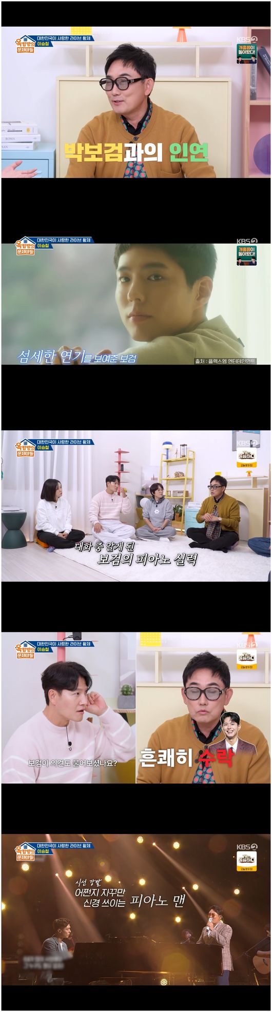 <리뷰:방송시청후작성된리뷰기사입니다.>[OSEN=오세진기자]‘옥탑방의문제아들’가수이승철이박보검과의인연을전했다.13일방영한KBS2TV예능‘옥탑방의문제아들’에서는가수이승철이등장했다.그는“박보검과는‘박보검의칸타빌레’에출연할정도로친분이있다.박보검과아는사람이라는사람들은다박보검과친하다고한다.나는친하다.박보검과명절때문자하는사이다”라며자랑했다.이승철의'내가많이사랑해요'에서뮤직비디오남자주인공역할을맡은박보검.이승철은“박보검이피아노를잘친다고하더라.배우가얼마나잘치겠나,싶었다.그런데뮤직비디오주인공이피아노로가수의라이브촬영을하면어떨까,싶었다”라면서“그래서‘유희열의스케치북’에함께나가서박보검이피아노를쳤다.그런데박보검만떴다.또박보검이‘별보러가자’를불렀는데그게떴다”라며박보검의피아노실력과더불어그의유명세를체감했다.이어이승철은“박보검이미안했나보더라.‘시즌스’에출연요청을했다.그런데조회수가대박이났다”라며"덕분에역주행이됐다"라며고마움을표현했다./[email protected][사진출처]KBS2TV예능‘옥탑방의문제아들’Copyright©OSEN.무단전재및재배포금지.