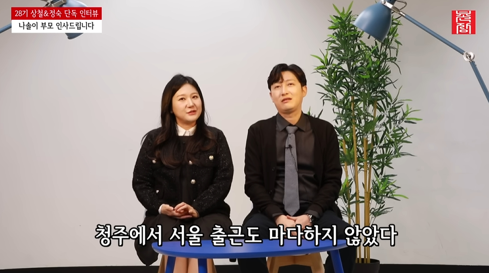 [스타뉴스|윤상근기자]/사진=유튜브채널'촌장엔터테인먼트TV'/사진=유튜브채널'촌장엔터테인먼트TV'SBSPlus,ENA'나는솔로'28기상철정숙커플이혼전임신이후근황을직접전했다.유튜브채널'촌장엔터테인먼트TV'는13일'우리나솔이축하해주셔서감사합니다28기상철&정숙단독인터뷰'라는제목의영상을공개했다.영상에서28기상철은"'나솔이'의아버지는저상철이다.많이궁금해하셨을것같다"라며"함께나솔이의탄생을축하받고하니까인생에서다시는없을그런큰행복이고행운"이라고전했다.28기정숙역시"주변에서'너맞지?'라고물어보는데이악물고아니라고했다"라고밝히고"나솔이는14주돼서안정기에접어들었다.성별은아들"이라고말했다.28기상철은"혼전임신이라고했지만좋았다.나이도마흔이넘었는데,어렵게찾아온선물이라고생각했다"라고말했고28기정숙은"솔직히만난지얼마안된상태에서아기가생겼기때문에조금두려웠는데아기가생긴것도인연이됐기때문에할수있는거라고하셔서받아들이고축복이라고생각한다"라고말했다.28기상철은"처음임신소식을접한직후놀랐지만바로낳자고했다"라며"청주에서바로휴가를내고서울로직행했고이후병원에가서피검사를했다"라고설명했다.한편두사람은'나는솔로'28기최종선택에서각각다른사람을최종커플로선택했지만방송이후깊은사이로발전하지못한것에대해서도언급했다.28기상철은"서로실의에빠져있는데28기전체동기모임을하게됐는데이야기를나누고마음이통했다.이후연락을하면서가까이지내게됐다"라고말했다.이에28기정숙이"일주일에4~5일정도만났던것같다"라고말했고28기상철은"몸은너무피곤했다.입에피곤하면구멍나지않나.그런것(구내염)견뎌가면서다녔다"라고답했다.두사람은"5월초출산이후결혼식을할예정이었다"라며"좀일찍당겨볼까생각은하고있다.상견례는다다음주에한다.웨딩플래너와도이야기가잘돼서식장이잡히면빨리하고싶다"라고답했다.윤상근기자[email protected]©스타뉴스&starnewskorea.com,무단전재및재배포금지