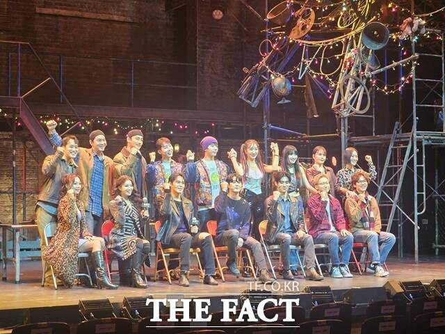 13일오후4시프레스콜개최내년2월22일까지코엑스아티움에서공연뮤지컬'렌트'프레스콜이13일오후4시서울강남구코엑스아티움5층에서진행된가운데참석한출연자들이포즈를취하고있다./김명주기자[더팩트|김명주기자]오는2026년초연30주년을맞는'렌트'가국내에서지난2020년첫선을보인후올해로10번째시즌을이어간다.동성애,에이즈,마약등시대의금기를마주하며청춘들의목소리를울려퍼지게만든작품은고민하며방황하는젊은이들에게시대를넘어선공감과위로의메시지를전한다.불안과동시에열정에휩싸인청춘들의이야기를담은'렌트'가관객들에게뜨거운울림을선사할수있을지이목이모인다.뮤지컬'렌트'프레스콜이13일오후4시서울강남구코엑스아티움5층에서열렸다.현장에는배우이해준유현석진태화양희준김수하황순종장지후황건하김려원김수연정다희이아름솔구준모,그룹SF9(에스에프나인)유태양,그룹EXID(이엑스아이디)솔지,그룹2AM(투에이엠)조권이참석했다.이들은방황하는청춘들의목소리를대변한작품이관객들에게공감과위로를선사할것이라고강조했다.1996년브로드웨이에서첫막을올린'렌트'는작곡가지아코모푸치니의오페라'라보엠(LaBohême)'을현대화한작품으로뉴욕이스트빌리지에모여사는예술가들의치열한삶을그린다.작품의창작자조나단라슨이직접경험한시대의불안과열정을바탕으로1990년대사회의기득권이외면했던동성애,에이즈,마약중독등의현실을정면으로다루며그시대청춘들의목소리를대변한다.작품에서이해준유현석유태양은죽기전에마지막곡을남기기위해고군분투하는음악가로저역을맡는다.에이즈환자로전여자친구가같은병으로자살한로저는갑자기나타난미미(김수하분·솔지분)에게사랑의감정을느끼지만회피하는인물이다.이해준유현석유태양은이번시즌처음'렌트'에합류했다.이해준은"쉽게도전하기어려운역할이어서많은부담을가졌지만같은역할에캐스팅된동료들과함께머리를맞대고민하면서준비했다"고,유현석은"연출님의연습방법이처음접하는것이어서새로웠고신선했다.캐릭터를입체감있게만들기위해고민했다"고소감을밝혔다.'렌트'는작곡가지아코모푸치니의오페라'라보엠(LaBohême)'을현대화한작품으로뉴욕이스트빌리지에모여사는예술가들의치열한삶을그린작품이다./김명주기자이어유태양은"형들과마찬가지로연습때부터많은긴장감과설렘을가득품고임했다.저에게는장면하나하나가챌린지처럼한계를넘어야하는과정으로느껴졌고그래서주변의많은분들이도움을주셨다.무대에함께할수있다는점에감사하고영광스럽게생각한다"고감격스러워했다.진태화양희준은다큐멘터리제작자이자이야기의스토리텔러마크역을연기한다.마크는죽어가는친구들사이에서홀로남겨질까봐두려워하는캐릭터다.마찬가지로이번시즌'렌트'에처음출연하는진태화는"'렌트'를연습하면서느꼈던점은인물들이다들외롭다는것이었다.개인으로도그렇고제3자가보는시선도사회적으로보는시선도외로운것같았다"며"마크는친구들의외로운모습을담아내려하는데한편으로는이들을떠나보내야하는인물이다.떠나는친구들을마주볼자신이없어서카메라에다큐멘터리로담는다"고설명했다.김수하와솔지는에이즈환자이자언제죽을지모르는삶일지언정오직오늘을위해사는강인함을가진클럽댄서미미로분한다.이번시즌미미에새롭게캐스팅된솔지는함께배역을맡은김수하에게고마움을표현했다.그는"캐스팅된것이영광스럽다고생각하면서연습했지만쉽지않았다"며"수아에게정말고마운기억이많다.미미는거침없고사랑에솔직한인물인데인간솔지에게서그런모습을꺼내는것이어려웠다.수아가도움을많이줬다"고회상했다.조권황순종은거리의드러머이자에이즈환자엔젤역을,장지후황건하는컴퓨터천재이자대학강사콜린역을맡는다.엔젤과콜린은서로에게빠지며진정한사랑을깨닫는다.2023년진행된공연에서엔젤역으로활약바있는조권은"환생한기분으로다시합류했다.지난시즌부터지금까지엔젤역이쭉이어진것만같은기분이든다.편안하고고향에온것같다"며"부담이없다면거짓말이겠지만그래도엔젤로서특별한감정과사랑을전달하기위해서많은배우들과함께즐겁고행복하게연습했다"고돌이켰다.조권은이번시즌의팀워크가남다르다고극찬했다.그는"출연자들과함께하면서서사가쌓인만큼이번시즌은팀워크가너무좋다.공연장에서'렌트'가주는특별한사랑이있었다.그래서모든출연자가의기투합해열심히준비할수있었다.확실히'렌트'가주는특별함이있는것같다.마지막공연까지행복하게공연할수있지않을까생각한다"고뜻깊은마음을표현했다.'렌트'는오는2026년2월22일까지코엑스아티움에서공연된다./김명주기자조권과황순종은2023년시즌을마지막으로약21년간연기해온엔젤역을떠난배우김호영에게남다른가르침을받았다고들려줬다.조권은"이전엔젤이었던호영선배님에게2년전인수인계를받았다.큰사랑을받아서저도후배들에게내리사랑을실천하려고했다"고,황순종은"조권선배님에게가르침받기도했지만호영선배님으로부터약한시간넘게전화로인수인계를받았다"고말해웃음을자아냈다.김려원김수연은아름다운외모의자유분방한행