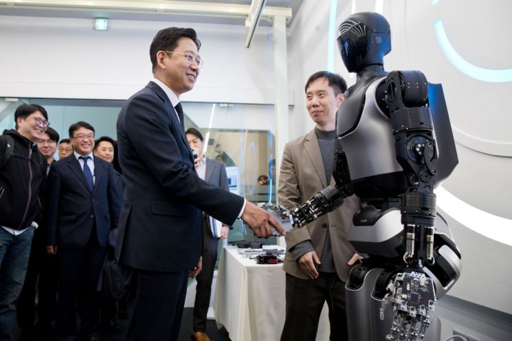 "빠른투자확대로中못지않은로봇강국기대""연구패러다임변화로분야별'AI연구동료'필요"배경훈부총리겸과학기술정보통신부장관이13일오후서울성북구한국과학기술연구원(KIST)을방문해AI휴머노이드'KAPEX'시연회현장에서휴머노이드의손을잡고있다.사진=과학기술정보통신부배경훈부총리겸과학기술정보통신부장관은13일한국과학기술연구원(KIST)을찾아차세대인공지능(AI)휴머노이드개발현장을점검한자리에서"데모(시연)수준을넘어실제산업현장에서작동할수있는휴머노이드로가야한다"며"중국이치고나가고있지만빠르게투자하면우리도못지않은로봇강국이될수있다"고말했다.이날현장은정부가이달말공개할'과학기술AI국가전략'발표를앞두고현장의기술수준과전문가의견을직접듣기위한자리였다.배부총리는이날KIST와LG전자·LGAI연구원이공동개발중인한국형AI휴머노이드'KAPEX'시연을참관했다.KAPEX는LGAI연구원의초거대AI모델엑사원을탑재해스스로학습·적응하는능력을갖춘휴머노이드로,사람손과유사한로봇핸드로정밀한조작이가능한'지능형동반자'를목표로개발되고있다.어깨·발목액추에이터는물론손에들어가는소형모터까지90%이상국산부품으로구성된점이특징이다.배경훈부총리겸과학기술정보통신부장관이13일오후서울성북구한국과학기술연구원(KIST)에서열린'제2차과학기술AI전략대화'에서'과학기술AI활성화방안'을논의하고있다.사진=과학기술정보통신부시연과정에서배부총리가로봇의손을직접잡아보자연구진은"고난도물체조작을위해손바닥의자율도와촉각센싱을대폭향상했다"며"가정이나공장에서사람을대신할피지컬AI로봇의기반을만든다는목표"라고설명했다.이어열린제2차'과학기술AI전략대화'에서배부총리는한국이피지컬AI에서경쟁력을확보하기위해서는대규모데이터셋과실제산업현장에서작동가능한로봇플랫폼확보가필수라고강조했다.그는"휴머노이드성공여부는결국데이터를얼마나잘모으고확산체계를구축하느냐에달려있다"며"정부와함께민간기업도투자해야한다"고말했다.배부총리는최근방한한젠슨황엔비디아CEO와의논의를언급하며글로벌협력필요성도강조했다.그는"엔비디아는한국이소프트웨어뿐아니라제조·하드웨어강점을동시에갖춰피지컬AI의최적파트너라고평가했다"며"중국이빠르게치고나가는상황이지만지금부터속도감있게투자하면충분히경쟁할수있다"고말했다.그는삼성·SK·현대차·네이버와추진중인GPU26만개공급협약과MOU도언급하며"한국제조업기반이휴머노이드경쟁력으로이어질것"이라고전망했다.이날전략대화발표에나선권인소KAIST교수는"후배연구자들이세계적인성과를낼수있도록정부의적극적지원이중요하다"고말했다.석차옥서울대교수와LGAI연구원,나노포지AI등도바이오·소재기반의과학기술AI산업화전략과AI연구동료발전방안등에대한의견을제시했다.과학기술분야AI혁신과제도제시됐다.배부총리는"한국이노벨상을받을준비를충분히해왔는지스스로묻게된다"며"기초연구투자만으로는부족하며,이제는연구패러다임자체가바뀌었으니분야별'AI연구동료(AICo-Scientist)'를만들어야한다"고강조했다.박유진기자[email protected]©아시아경제.무단전재및재배포금지.