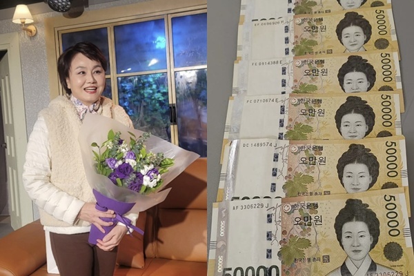 이경실/소셜계정캡처[뉴스엔하지원기자]코미디언이경실이연극'스페셜보잉보잉'무대에오르고있는근황을전했다.이경실은11월12일소셜계정에“오늘공연에도많은분들이다녀가셨어요.고맙습니다”라는글과함께꽃다발을들고있는사진을공개했다.이경실은지인들로부터꽃다발은물론케이크,햄버거,커피등다양한선물을받았다며“덕분에단원들이배불리먹고신나게공연했다”라고감사의마음을전했다.특히이경실은"페친언니가금산에서가져온인삼과함께편지있다고읽어보라고해서조심스럽게열어보니신사임당6장이들어있었다.깜짝놀랐다.몸보신하라셨잖아요?연극하는동안후배들과맛난거먹을게요.고맙습니다참말로"라며"이런사랑받아도되나싶습니다.더욱열심히하겠습니다"라고덧붙였다.뉴스엔하지원oni1222@기사제보및보도자료[email protected]ⓒ뉴스엔.무단전재&재배포금지Copyright©뉴스엔.무단전재및재배포금지.