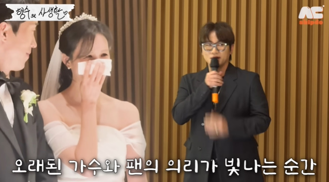 사진=‘형수는케이윌’채널영상캡처사진=‘형수는케이윌’채널영상캡처사진=‘형수는케이윌’채널영상캡처[뉴스엔이하나기자]걸스데이민아가케이윌에게유쾌하게결혼소식을전했다.지난11월12일‘형수는케이윌’채널에는케이윌의결혼식축가영상이담겼다.영상에서케이윌은“나랑같이일한적은없으나친한댄서동생이있다.이친구가그날결혼한다.축가를나한테부탁을못했는데가서축가를해줄까싶다.내머릿속에만한달째있었던거다”라며자신의오랜팬인한댄서를위해깜짝축가를준비했다.케이윌은“예전에방송을한창많이할때늘가면댄서친구가‘엄청팬인친구가있다’,‘형엄청팬이래요’해서가보면늘그자리를지키고있던친구다.지금보다더러알려졌을때부터‘나는케이윌의팬이다’라고했다”라고19년째자신을응원해주는팬을향한고마움을드러냈다.팬은혹시라도케이윌에게부담을줄까봐결혼소식만전하고청첩장은주지않았더너상황.케이윌은“이친구가저한테부탁을못했다.그래도마음이뭔가해주고싶어서가면좋아하지않을까라고생각하고연락없이,계획없이결혼식장으로가려고준비하고있다”라고말했다.신랑에게미리축가계획을알린케이윌은예식장측에양해를구한뒤축가를준비했다.결혼식중케이윌이깜짝등장하자,팬은왈칵눈물이쏟아졌고,케이윌은“신부의지인분들도많이아시겠지만제가데뷔한이후부터줄곧굉장히열심히성원해주고응원해준친구라서오늘자리를꼭참석하고싶었다”라고인사한뒤‘왼손을잡고’를열창했다.성공적으로축가를마치고나온케이윌도울컥한마음이진정되지않았다.케이윌은“축가는사실늘부담이많이된다.식장컨디션도있고.축가를가는건좋은노래를들려드리러가는거니까.내목컨디션도있고.아침11시반에결혼하는건반칙이지”라고말했다.당일에행사가잡혀있던상황에서잠깐시간을내결혼식에참석한케이윌은“너무울어서.사연있는것같잖아.나도뭔가사연있는사람된것같다”라고말해웃음을자아냈다.뉴스엔이하나bliss21@기사제보및보도자료[email protected]ⓒ뉴스엔.무단전재&재배포금지Copyright©뉴스엔.무단전재및재배포금지.