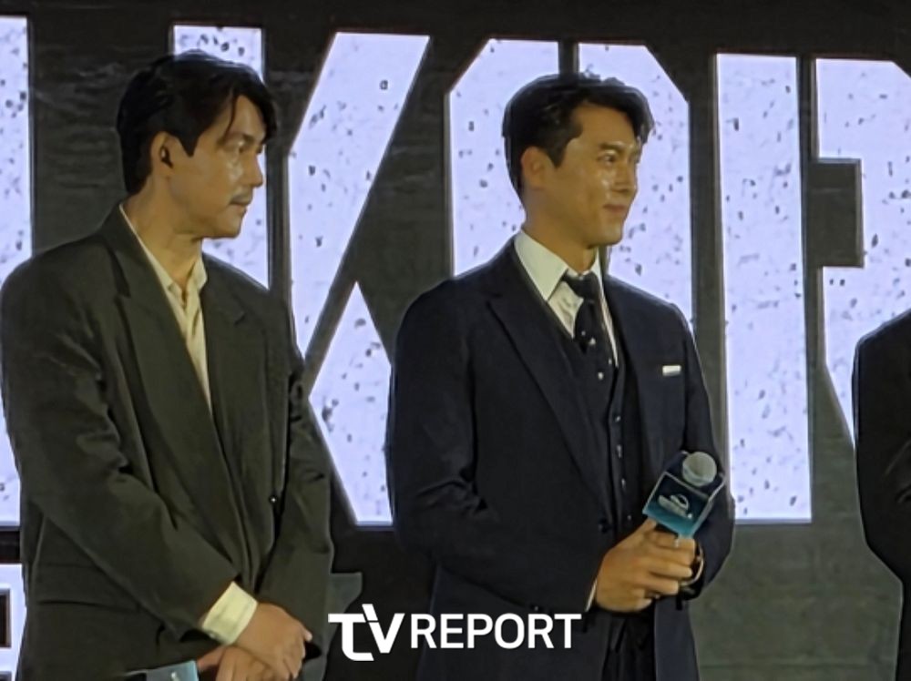 ‘2025디즈니플러스프리뷰’홍콩행사진행정우성·현빈출연작‘메이드인코리아’홍보정우성‘혼외자논란’언급無‘메이드인코리아’시즌2,제작확정…내년하반기공개정우성.사진ㅣ지승훈기자‘혼외자논란’은일절언급되지않았으며그의글로벌인기는여전했다.‘메이드인코리아’가디즈니플러스를대표하는작품임이입증되는순간이었다.13일(현지시간)홍콩란터우섬에위치한디즈니랜드호텔컨퍼런스센터에서는‘디즈니플러스오리지널프리뷰2025’행사가진행됐다.현장에는한국,일본등전세계약400여명의취재진이참석했다.이날정우성이출연한‘메이드인코리아’출연진은디즈니플러스아태지역콘텐츠소개시간을통해무대에올랐다.정우성을비롯해배우현빈,우도환,우민호감독이참석했다.이번행사가주목을받았던결정적이유는정우성의참석여부였다.그는지난해11월모델문가비가출산한아들의친부로알려지며도마위에올랐다.당시정우성은소속사를통해혼외자라는사실을인정했으나결혼은하지않는다고밝히며“최선의방향으로논의중에있으며아버지로서아이에대해서끝까지책임을다할것”이라고입장을전했다.이후그는국내활동을최소화하며좀처럼대중앞에서지않았다.사건이알려진직후인‘청룡영화상’무대를통해서만얼굴을내민게전부였다.해당무대에서도“질책은제가받고또안고가겠다.아들에대한책임은끝까지다하겠다”고짧게사과입장을강조했다.정우성.사진ㅣ지승훈기자이번홍콩행사에서도해당사건에대해선어떠한언급도없었다.그러나사건을의식한탓인지평소보여줬던미소대신다소어두운표정으로일관했다.정우성은“연기를하며배우들과인연을맺는게소중한데현빈등동료배우들과함께하게돼좋았다.특히감독님이출연제안을줬을때,‘장건영’캐릭터는나에게맞지않는거라생각했었는데대본을다시읽어보며용기내서하게됐다”고출연소감만남겼다.이와함께“재밌으니까꼭시청해달라”고당부의뜻을덧붙였다.‘메이드인코리아’는격동의1970년대,부와권력에대한야망을지닌백기태(현빈)와그를막기위해모든것을내던진검사장건영(정우성)이시대를관통하는거대한사건과직면하며펼쳐지는이야기.거칠었던시대가낳은괴물같은인간들의파란만장한삶을그린다.이번작품은남다른특별성을지닌다.우감독을비롯해현빈과정우성의첫OTT출연작이다.특히현빈은tvN드라마‘사랑의불시착’이후약6년만의복귀작이다.정우성,현빈.사진ㅣ지승훈기자현빈은“우리작품을통해올겨울뜨겁게보내셨으면좋겠다”면서“현장에서서로아이디어를활발히주고받았다.특히감독님결단이빠르다.아이디어종합해서보내드리면바로적용해주셨다.또아니다싶으면단칼에끊기도하셨다.합좋게촬영을하고있다”고만족해했다.‘메이드인코리아’팀은시즌2제작에돌입했다며내년하반기공개를예고해눈길을끌었다.‘메이드인코리아’은12월24일,두편을첫공개한뒤12월31일2편을추가공개한다.이후순차적으로남은회차를공개하며시청자들을만난다.[홍콩=지승훈스타투데이기자]Copyright©스타투데이.무단전재,재배포및AI학습이용금지