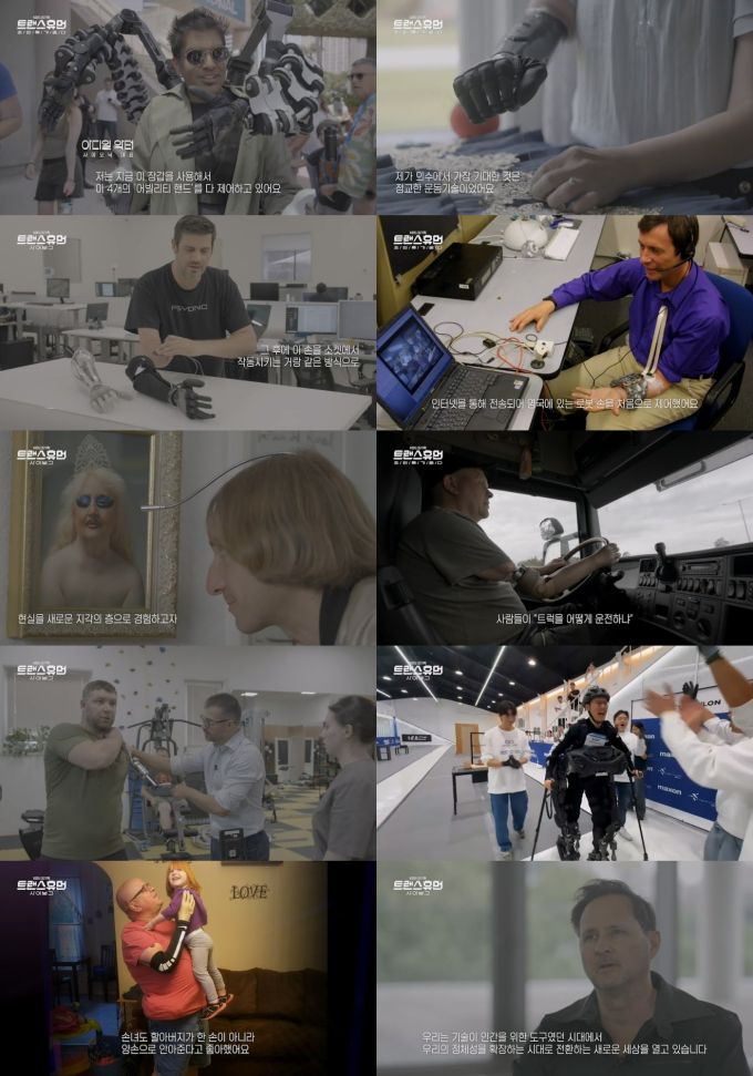 ‘트랜스휴먼’로봇팔드러머등장(제공:KBS)일명‘초능력다큐’로불리며방송전부터화제를모은KBS대기획‘트랜스휴먼’3부작중1부‘사이보그’편이공개됐다.내레이터한효주는‘인간증강’의시대,결손을채우고인간을더욱강하게만들로봇팔·인공심장등의새로운가능성을따뜻한목소리로전달했다.지난12일첫방송된KBS대기획‘트랜스휴먼’1부‘사이보그’에서는공상과학영화의단골소재인인간과기계의결합을다뤘다.미국사이오닉(PSYONIC)사의‘생체공학팔’,프랑스카르마(CARMAT)사의‘완전인공심장TAH(TotalArtificialHeart)’등이대표적인‘사이보그기술’로소개됐다.1998년영국의케빈워릭교수는RFID(무선주파수신호장치)를팔에심고,인간의신경부와전자기기를연결하는실험을했다.이는2002년원격팔실험으로발전해생체공학의새시대를열었다.2025년현재,선천적신체결손장애를가진맨디퍼슬리는생체공학의수로바느질과같이섬세한작업까지할수있다.감전사고로팔을절단한제이슨반즈는속도와BPM까지인식가능한로봇팔로보다정교한드럼연주를하는‘사이보그드러머’가되며일상을회복했다.또,선천적으로색맹이지만두개골에심은안테나로‘색을듣는’닐하비슨은영국정부로부터‘최초의사이보그’로인정받았다.그는얼굴이들려주는멜로디로‘음향초상화’를그려예술세계를확장했다.그런가하면,말기심부전을앓는프랑스의장이브르브네즈는공장에서만들어진완전인공심장(TAH)을이식받아삶을이어가고있다.생체공학의권위자인MIT휴허교수의최첨단‘신체절단법’도공개됐다.그는등산사고로무릎아래를절단해야했다.하지만그는사고후직접개발한의족을끼고‘신경체화’기술로인류를이끌었다.휴허교수는수축담당작용근과이완담당대항근을연결시켜움직임과감각을되살리는새근신경연결기법AMI(Agonist-antagonistMyoneuralInterface)을개발했다.지난7월에는골유착근육신경연결(OMP)을통해뇌에서시작된신호가척수를거쳐생체공학다리로전달되고,그감각정보를다시뇌로전달하는연구까지진행중이었다.이러한첨단기술은단순히‘과학적’일뿐아니라,누구보다도‘인간적’인감정을일깨우는수단이다.케이스웨스턴리저브대학교의인간융합연구소에서로봇손으로감각을느끼는실험에10년째참가중인키스폰더휴벨은“생체공학팔로제가손녀를안는감각이느껴졌다.평소에는의수를끼고손녀를안지않는다.(의수에감각이없으니까)다치게할까무서워서…(손녀를안았을때)눈물이났다”며로봇손으로감각을느꼈을당시의벅찬감동을회상했다.또다른생체공학의권위자인막스카탈란박사가전쟁중인우크라이나의사들의연락을받고한달음에달려와키이우복합골유합·생체공학센터에서병사들을일상으로돌려보내기위해분투중인모습도포착됐다.그는12년전트럭운전수매그너스의뼈에‘골유착티타늄’으로만든임플란트를심고근육에전극을달았다.뼈와근육,그리고신경에직접임플란트를연결한최초의사례다.막스카탈란박사는“이식된전극과수술적재건,정보를추출할수있는티타늄임플란트가있었기때문에AI가학습할수있었고,이환자는추가적인정교함이나추가적제어를해낼수있었다”고회상했다.내레이터를맡은한효주는“이들을살려낸것은의학이지만,삶의의지를심어준것은공학”이라며깊은울림을자아냈다.한국에서도재활을돕는보행로봇부터,공장노동자들의안전과건강을책임지는웨어러블로봇에이르기까지연구가한창이다.2024년스위스에서개최된사이배슬론(Cybathlon)대회에참가한한국의카이스트팀은,사고로하반신마비가된김승환연구원을파일럿으로내세워웨어러블로봇분야에서우승했다.유일하게카이스트팀만이모든과제를완주했다.한국과학생태계복원의기분좋은신호탄에대해전한한효주는“운명적한계를극복하기위해시작된도전.다가올미래,인류의삶은어떻게바뀔까?”라며본질적질문을던졌다.한효주의따뜻한목소리로기계와인간의경계,그최전선을소개하는KBS대기획‘트랜스휴먼’3부작은12일부터3주간매주수요일밤10시KBS1TV에서방송된다,이현승기자bnt뉴스연예팀기사제보[email protected]©bnt뉴스.무단전재,재배포및AI데이터활용금지