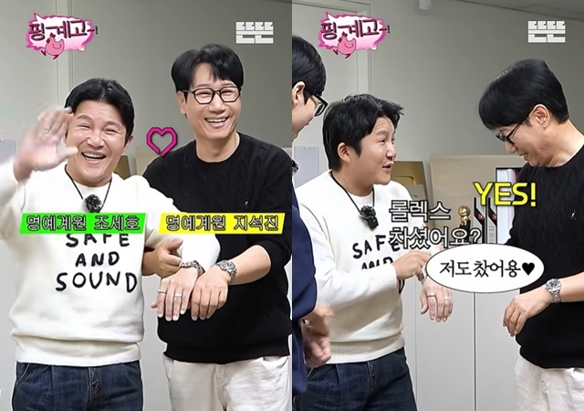 ‘핑계고’영상캡처[뉴스엔박수인기자]개그맨조세호,지석진이명품시계를차고'핑계고'를찾았다.최근채널'뜬뜬'콘텐츠'핑계고'에는지석진,홍진경,조세호가'가짜의삶주역들'로출연해유재석과이야기를나눴다.이날조세호는지석진과같은브랜드의시계를찬것에반가워하며"롤렉스차셨어요?저도찼어요"라고알렸다.손목에찬시계를카메라를향해보여주기도.한편조세호는"진심으로(홍진경)누나가맞이하는하루가나보다좀더즐거웠으면좋겠고(유재석)형이맞이하는하루가나보다좀더온전했으면좋겠다는생각을한다"고말했다.이때지석진은"근데왜날건너뛰고이야기해?"라며서운함을표했고홍진경은"스타먼저하고그다음스타친구가는거야.순서가그래"라며대신답해웃음을자아냈다.뉴스엔박수인abc159@기사제보및보도자료[email protected]ⓒ뉴스엔.무단전재&재배포금지Copyright©뉴스엔.무단전재및재배포금지.