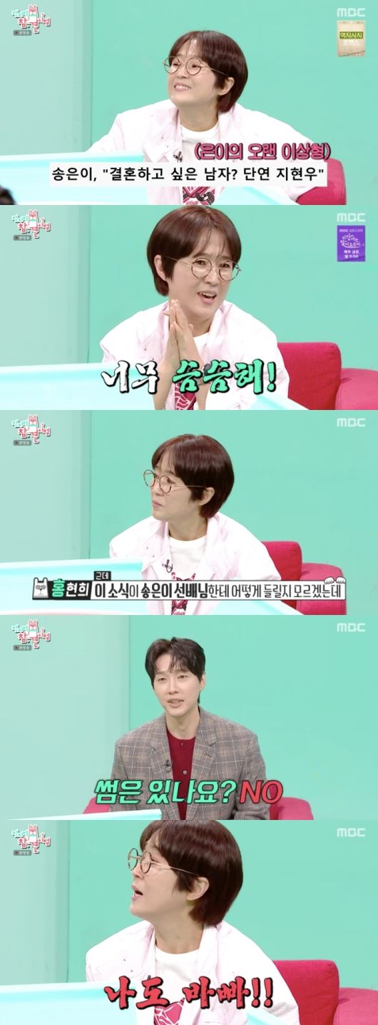 방송시청후작성된리뷰기사입니다.[OSEN=임혜영기자]송은이가지현우를향한애정을드러냈다.8일방송된MBC‘전지적참견시점’(이하전참시)에는윤남노,지현우가출연했다.송은이는지현우를이상형으로꼽으며“지현우는젠틀한이미지에좋아하는스타일이다”라고설명했다.그러나송은이는곧“오늘지켜봤는데너무슴슴하다”라고덧붙였다.홍현희는“인터뷰에서제가봤다.마흔되면결혼하겠다고하더라”라고말했고지현우는현재썸과연애모두없다고밝혔다.홍현희는“이럴때송은이만나서커피도먹고그래라”라고제안했고송은이는당황한듯“나도바빠”라고소리쳤다./[email protected][사진]MBC‘전지적참견시점’Copyright©OSEN.무단전재및재배포금지.