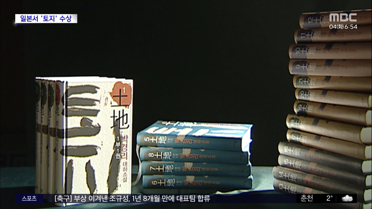 [뉴스투데이]작가박경리가쓴대하소설'토지'의일본어완역본이제79회마이니치출판문화상기획부문수상작으로선정됐습니다.일본어완역본은모두20권으로,마지막권은지난해9월출간됐는데요.일본의한국문학전문출판사인쿠온출판사가10년이라는긴시간에걸쳐이룬프로젝트입니다.'토지'는일제강점기를배경으로민족의역사와인간의존엄성을그린작품으로한국문학의정점으로평가받고있습니다.지금까지문화연예플러스였습니다.MBC뉴스는24시간여러분의제보를기다립니다.▷전화02-784-4000▷이메일[email protected]▷카카오톡@mbc제보김옥영리포터기사원문-https://imnews.imbc.com/replay/2025/nwtoday/article/6771985_36807.htmlCopyright©MBC&iMBC무단전재,재배포및이용(AI학습포함)금지