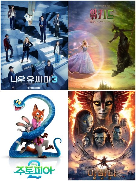 사진제공|롯데엔터테인먼트·유니버설픽쳐스·월트디즈니컴퍼니코리아일본발콘텐츠쓰나미에이어할리우드초대형속편들의공세가예고되며우리영화입지가급격히좁아지고있다.‘귀주톱’(귀멸의칼날·주술회전·체인소맨)으로대변되는일본애니메이션이국내박스오피스를장악한가운데,하반기할리우드블록버스터들이대거밀려오며충무로를위협하고있다.‘나우유씨미3’가11월12일먼저나서속편대결의포문을연다.9년만에돌아오는마술블록버스터로,마술사기단호스맨이더러운돈의출처인하트다이아몬드를훔치기위해나서는이야기를그린다.제시아이젠버그를위시로한원년멤버들과새로운빌런로자먼드파이크등이업그레이드된화려한마술쇼를선보인다.11월19일에는뮤지컬블록버스터‘위키드’의속편‘위키드:포굿’이출격한다.같은제목의브로드웨이뮤지컬을스크린에옮긴작품으로,전편‘위키드’는7억5644만달러(1조874억원)의흥행수입을기록하며지난해글로벌흥행5위에오른바있다.‘위키드:포굿’개봉에앞서11월5일부터2주간‘위키드’의재상영이결정돼흥행예열에도나선다.11월26일에는디즈니애니메이션‘주토피아2’가개봉한다.2016년아카데미장편애니메이션상수상작인‘주토피아’의속편으로,전작주인공인여우닉과토끼주디여기에새로운뱀캐릭터게리가등장한다.외신들은벌써부터‘주토피아2’가전세계10억달러(약1조원)이상의흥행을거둘것으로예측하고있다.‘할리우드속편대결’의대미는12월개봉하는‘아바타:불과재’가장식한다.2009년첫선을보인‘아바타’는당시29억달러(4조원)를벌어들이며‘글로벌역대최고흥행작’에등극했고,2022년개봉한‘아바타:물의길’역시흥행(역대3위)에성공했다.‘아바타:불과재’는글로벌시장에서최소20억달러(2조원)이상의흥행수익은물론,연내유일한국내‘1000만관객달성작’이될것으로전망되고있다.이승미기자[email protected]©스포츠동아.무단전재및재배포금지.