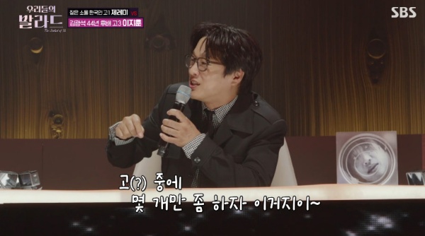 우리들의발라드/사진=SBS캡처[스포츠투데이정예원기자]'우리들의발라드'차태현이폭탄발언을던졌다.28일방송된SBS예능'우리들의발라드'에서는김지원과송지우,제레미와이지훈,김민아와김윤이가2라운드에서맞대결을펼치는모습이그려졌다.우리들의발라드/사진=SBS캡처이날발라드의두번째키워드는'술'이었다.대결상대는고1제레미와고3이지훈으로,두사람은어릴적같은합창단에서활동한인연이있었다.제레미는유재하의'우울한편지'를선곡,"어른들은어떨때술이당길까생각하다이런편지를봤을때당기지않을까싶었다"며노래를열창했다.미미는"제레미만의소울이있다.중간에노래를하다절쳐다보신게맞냐"고물었지만,제레미가당황한표정을짓자"아닌가보다"라며빠르게정리해웃음을안겼다.지난무대에서"김광석을버려야한다"는지적을받은이지훈은박상태의'나와같다면'을택했다.무대가끝나자정재형은"왜그런지모르겠는데그냥눈물이났다.할말이없다.너무잘했다.박주연작사가가한국에있었다면정말좋아했을것"이라고칭찬을아끼지않았다.정승환은"자기얘기하듯노래를부르는게발라드에서중요한덕목이라생각하는데,그부분을정말잘표현한것같다"고말했다.반면차태현이"욕먹을각오하고말씀드리겠다"고입을열자모두의시선이쏠렸다.그는"지훈씨가완벽하게바뀐모습이진짜좋았다.제가준'김광석버리기'라는숙제를정말잘해오신것같다.그런데영화'미녀는괴로워'를보면,의사로출연한이한위씨가수술후김아중씨의붕대를풀고'코만다시하자'고말하지않나.그런느낌이었다.다좋은데박자를당기는것만조금고치면좋을것같다.앞서제레미는혀를낼름낼름하는게자꾸거슬렸다"고솔직하게털어놔폭소를유발했다.[스포츠투데이정예원기자[email protected]]Copyright©스포츠투데이.무단전재및재배포금지.