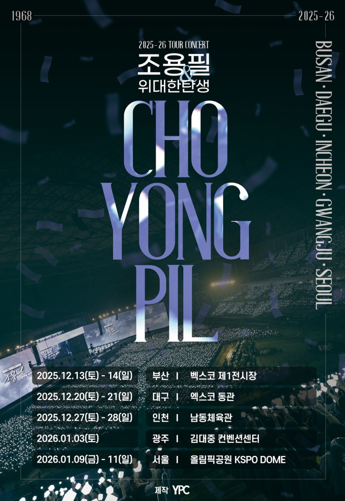 조용필콘서트,서울티켓오픈(사진=:에스제이이엔티)조용필전국투어의대미를장식할서울콘서트티켓이오픈된다.27일오후2시NOL티켓(구.인터파크)를통해‘2025–26조용필&위대한탄생Concert’서울공연티켓이오픈된다.서울공연은오는2026년1월9일부터11일사흘간올림픽공원KSPODOME에서개최된다.이번콘서트는30년넘게호흡을맞춰온밴드위대한탄생의연주와함께조용필의명곡들을만나볼수있다.특히데뷔57주년을맞이한조용필이지금껏쌓아온음악내공은물론,그어떤콘서트보다화려한연출과볼거리들을즐길수있다.조용필은매콘서트마다대한민국전설의이름값과존재감을제대로증명했던만큼,이번콘서트에서역시여전한‘가왕’의파워를느낄수있을것으로기대된다.최근KBS2TV광복80주년KBS대기획‘조용필,이순간을영원히’는시청률조사기관닐슨코리아에따르면시청률전국시청률15.7%를달성,추석연휴기간방송된프로그램중가장높은시청률을기록하며뜨거운화제를일으켰다.이에대중들의관심과사랑에보답하기위해일요일인12월14일부산,12월21일대구,12월28일인천공연이추가됐다.추가공연티켓은각각27일오후3시,4시,5시순차적으로오픈된다.오는12월부산을시작으로대구,인천,광주,서울에걸쳐이어질콘서트는현재뜨거운열기를얻고있다.이런가운데,전국에감격을선사할조용필은이번전국투어를통해또한번‘가왕’이라는이름을입증할예정이다.한편,‘2025–26조용필&위대한탄생Concert’서울공연은오는2026년1월9일오후7시10일오후6시11일오후5시올림픽공원KSPODOME에서열리며,티켓예매는27일오후2시NOL티켓(구.인터파크)를통해진행된다.박지혜기자[email protected]뉴스연예팀기사제보[email protected]©bnt뉴스.무단전재,재배포및AI데이터활용금지