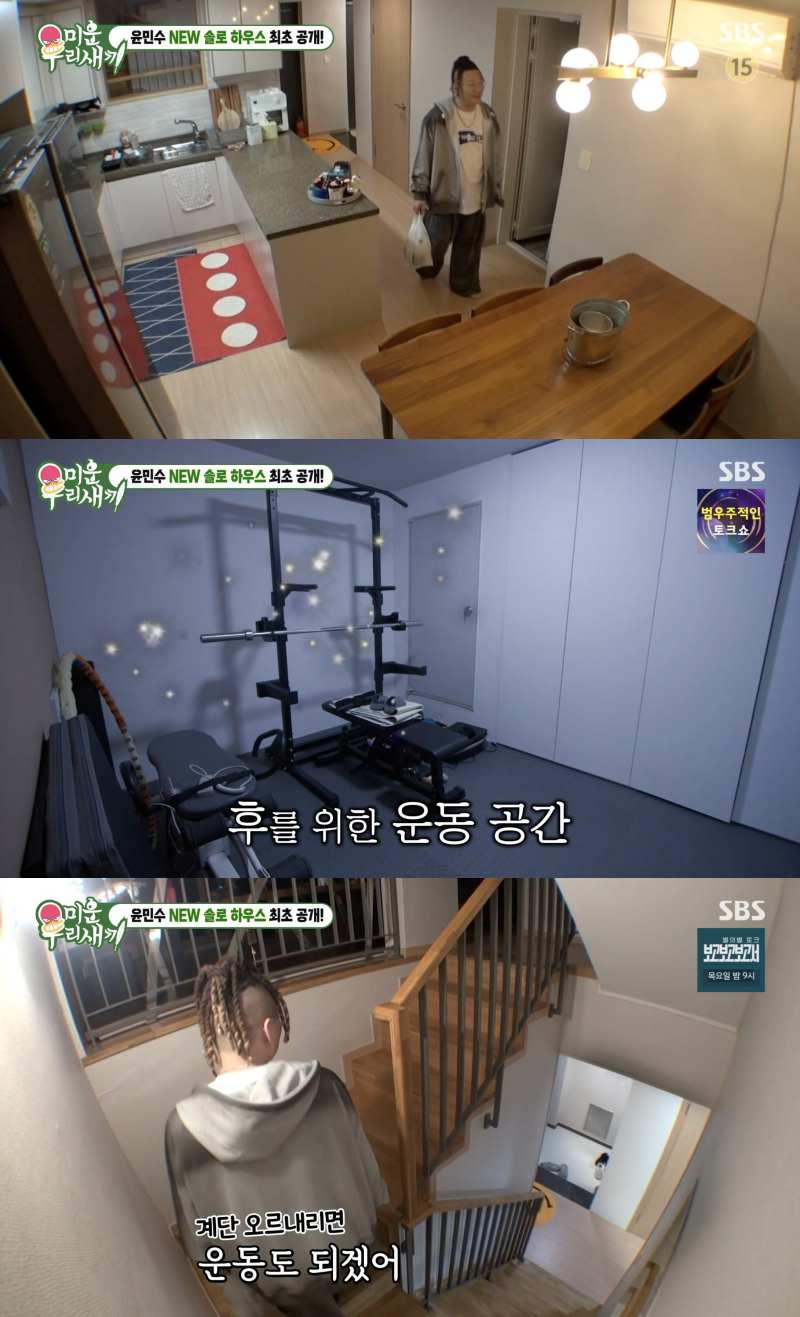 ⓒSBS'미운우리새끼'[스포츠한국신영선기자]가수윤민수가이혼후혼자살집을공개했다.26일방송된SBS'미운우리새끼'에서는결혼18년만에이혼한윤민수가전처와의동거를끝내고혼자살집으로이사를가는모습이그려졌다.이날윤민수는전처에게"잘살아"란마지막인사를하고20년간함께지냈던집을나와새집으로향했다.그는먼저행정복지센터에가전입신고를하고가족관계증명서를발급받은뒤서류를보며복잡한심경에묘한표정을지었다.ⓒSBS'미운우리새끼'하지만새집문을열고들어서자마자"와우"라고감탄사를내뱉으며웃음지었다.윤민수가홀로서기에나선집1층에는1인가구에알맞은아담한주방에아들윤후를위한운동방이있었다.계단을올라가면나오는2층은거실과침실,옷방으로꾸며졌고3층에는큰옷방과윤후를위한방으로이뤄졌다.마지막으로계단을올라가면나오는작은공간은윤후를위한취미공간으로구성됐고문을열면테라스가나왔다.한편윤민수는2006년비연예인아내와결혼해슬하에아들윤후를뒀다.그는지난해5월이혼했다.스포츠한국신영선기자[email protected]©스포츠한국.무단전재및재배포금지.