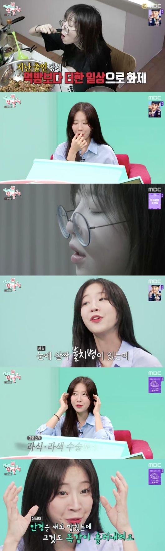 '전참시'에출연한쯔양.사진=MBC방송화면(엑스포츠뉴스문채영기자)'전참시'에서쯔양이불치병을고백했다.25일방송된MBC'전지적참견시점'에는가수김장훈과먹방크리에이터쯔양이출연했다.이날방송에서전현무는"돌아온위대한여신구독자1,260만유튜버쯔양이다"라고쯔양을소개했다.이어유세형은"대박인건(구독자가)3개월전보다30만명이늘었다.계속는다"라며쯔양의구독자에감탄했다.쯔양은"'전참시'나가고주변반응도너무좋았고조회수도'전참시'나가고확늘어서많이올랐다"라며감사를전했다.'전참시'방송화면.사진=MBC유병재는쯔양에게"저번에방송나가고해명영상올리셨던데"라고물었다.쯔양은"저는일상이어서몰랐는데,제가안경알이엄청무거워서계속내려온다.제가(코에)걸치고먹었다.'귀여운척하냐?'라는이야기가있었다"라고설명했다.이어그는"눈망막에살짝불치병이있다"라고밝혔다.앞서쯔양은유튜브채널을통해"'망막색소변성증'이라고(있다).나중에실명될수도있다"라고고백한바있다.쯔양은"그거때문에라식이나라섹도못한다.그래서심지어(안경을)새로맞췄는데그것도똑같이흐른거다"라고덧붙였다.이영자는"눈이안좋으면그렇다"말했고,유병재는"(안경이)무거우니까"라고알렸다.사진=MBC방송화면문채영기자[email protected]©엑스포츠뉴스.무단전재및재배포금지.