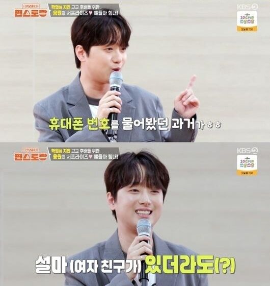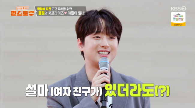 방송시청후작성된리뷰기사입니다.[OSEN=박하영기자]‘신상출시편스토랑’이찬원이고교시절여고생들에게인기가많았다고고백했다.24일방송된KBS2TV예능‘신상출시편스토랑’(이하‘편스토랑’)에서는이찬원의‘청춘응원프로젝트2탄’이공개됐다.이날이찬원은모교경원고등학교에서학교를빛낸인물에등극해눈길을끌었다.로비한쪽에‘연예대상수상’으로자신의이름을발견하자“진짜빠르게업데이트했다”라고감탄했다.학교에들어서자마자이찬원은가장먼저교장실을방문했다.환한미소로반긴교장선생님은“매년네가선생님들잊지않고꽃도보내줘서”라며매년24명의선생님께스승의날을맞아꽃선물을보내고있다고미담을전했다.이어전산실을찾은이찬원은방송에도출연했던고3때담임선생님을만났다.이찬원은“편셰프로학교찾아가겠다는약속지키러왔다”라고말했다.한편,극비로진행된이벤트만큼이찬원은600명전교생을체육관으로불러모은뒤깜짝등장했다.노래를열창한그는“많은공연,행사를다녔고몇만명앞에서노래도했는데오늘이가장뜻깊고떨리는순간”이라고소감을밝혔다.또이찬원은후배들과의질의응답시간을가졌다.이때한학생은“여자친구사귀는법알려주세요”라고물었고,이찬원은“저는학창시절에축제하면여고생들오지않냐,저는항상여기서사회를봤다.MC보고내려가면2~3명여고생이저한테휴대폰번호물어봤다”라고너스레를떨었다.반면다른학생은“지금여자친구있으신가요?”라고궁금해했다.이찬원은“제가있다고이야기하겠냐.설마있더라도”라고의미심장하게말하다“지금없다”라고선을그었다.후배들과즐거운시간을보내고난뒤,야간자율학습을하는고3학생들을위해수제닭강정요리에나섰다.무려200인분을완성한그는푸드트럭에서일일이컵에담아준비했다.그때기숙사사감선생님을만나자이찬원은버선발로뛰어가포옹했고“그때선생님께서진짜많이가르쳐주시고지도해주시고”라며감사인사를전했다.야간자율학습시간이끝나고,하교하는길이찬원의푸드트럭을발견하고뛰어갔다.이찬원은한명한명에게응원의메시지를건네며200명모두에게닭강정을건넸다.간식차이벤트를마친후이찬원은“후배들이맛있게먹어주고또저한테‘맛있게먹었습니다’이쁜말들을건네서오히려제가더행복을얻은것같다”라고전해훈훈함을자아냈다./mint1023/@osen.co.kr[사진]‘신상출시편스토랑’방송화면캡처Copyright©OSEN.무단전재및재배포금지.