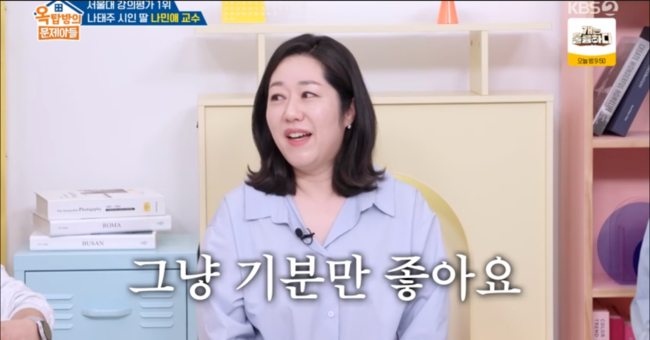 방송시청후작성된리뷰기사입니다.[OSEN=박근희기자]'옥탑방의문제아들’나태주시인의딸이자서울대학교교수로재직중인나민애교수가'서울대강의평가1위'라는타이틀에얽힌비하인드와현실적인이야기를공개했다.23일오후방송된KBS2TV예능‘옥탑방의문제아들’(이하‘옥문아’)에서는서울대생들이사랑하는글쓰기교수이자나태주시인의딸,나민애교수가옥탑방손님으로찾아왔다.방송인송은이가"요즘대치동에서'국어는집팔아도안된다'는말이유행할정도로국어가어렵다"고밝히자,김숙은"그런의미로핫한국어교육전문가"라며나민애교수를소개했다.나교수는현재19년째서울대에서글쓰기수업을가르치고있는'서울대생이사랑하는선생님'이다.나교수는앞서아버지인나태주시인이해당프로그램에출연했던사실이언급되자유쾌한폭로를이어갔다.나교수는"아버지는3인이상모이면선생님모드,교장선생님이다"라며"말이너무많다"고너스레를떨어녹화장을웃음바다로만들었다.또한,나민애교수는지난2019년서울대강의평가1위를기록한놀라운이력을공개했다.그는학생들의평가중"서울대와서가장좋은건나민애선생님수업을들은것"이라는글을보고감동받았음을밝혔다.이러한강의평가1위타이틀에MC들이"강의료가올라가냐"고묻자,나교수는"그런건전혀없다.그냥기분만좋다"고솔직하게답해웃음을자아냈다.강의인기가높은비결로는망설임없이"학생들이웃기대요"라고답하며유머를통해학생들의몰입도를높이는자신만의노하우를시사해눈길을끌었다./[email protected][사진]‘옥탑방의문제아들’방송화면캡쳐Copyright©OSEN.무단전재및재배포금지.