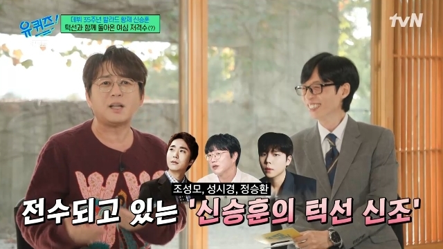 tvN‘유퀴즈온더블럭’캡처tvN‘유퀴즈온더블럭’캡처[뉴스엔서유나기자]가수신승훈이발라더로서의턱선신조를드러냈다.10월22일방송된tvN예능'유퀴즈온더블럭'(이하'유퀴즈')315회에는데뷔35주년을맞은발라드의황제신승훈이게스트로출연했다.이날신승훈은"컴백전발라드턱선을유지하려고준비했다던데"라는유재석의말에"댄스하시는분들은춤으로어필하지만발라더들은목소리말고어필할게없다.15초는가만히있어야한다.'15도로여심을베야한다'가제신조"라며"조성모,성시경,정승환에게다전수하고있다"고털어놓아웃음을자아냈다.신승훈은"'ㄴ'이어야하는데'ㅇ'자는안된다"면서"곡쓸때제가쪄있다.가수모드로돌아오면'ㄴ'이보인다.'내가드디어가수가될때가됐구나'하고인별에올린다.'드디어제턱선이돌아오고있어요'라고하면우리팬들은'살빼고있구나.다이어트에돌입하셨구나'하고안다"고밝혔다.한편신승훈은1967년생으로만58세다.1990년1집앨범'미소속에비친그대'로가요계에데뷔했다.지난9월23일데뷔35주년을기념해정규11집발매약10년만에정규12집‘SINCERELYMELODIES’(신시얼리멜로디스)를발매했다.뉴스엔서유나stranger77@기사제보및보도자료[email protected]ⓒ뉴스엔.무단전재&재배포금지Copyright©뉴스엔.무단전재및재배포금지.