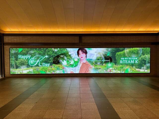 "케이야생일축하해""케이야생일축하해"21일그룹앤팀케이의생일을맞아서울용산구아이파크몰미디어월을통해축하영상이상영중이다./팬앤스타[더팩트|이나래기자]그룹앤팀케이가생일을맞아팬들에게잊지못할선물을받았다.팬앤스타는21일서울용산구아이파크몰미디어월을통해광고중인임영웅이벤트사진을공개했다.케이의팬들은지난8월22일진행된팬앤스타'전광판광고'를달성했다.광고는이날도쿄신주쿠신오쿠보전광판,서울용산구아이파크몰미디어월,서울여의도유진빌딩전광판에서광고가진행된다.케이의서포트가성공하며'팬앤스타'에는팬들의응원메시지가쏟아졌다.팬들은댓글로"케이야생일축하해","많은사람들이널사랑해"등의글을전했다.한편'팬앤스타'에서는팬들이직접자신이원하는아티스트의전광판서포트를직접오픈할수있다.전광판영상을직접만들수있으면'스페셜애즈'를,영상을제작할수없다면'글로벌애즈'로신청하면된다[email protected]발로뛰는더팩트는24시간여러분의제보를기다립니다.▶카카오톡:'더팩트제보'검색▶이메일:[email protected]▶뉴스홈페이지:http://talk.tf.co.kr/bbs/report/writeCopyright©더팩트.무단전재및재배포금지.