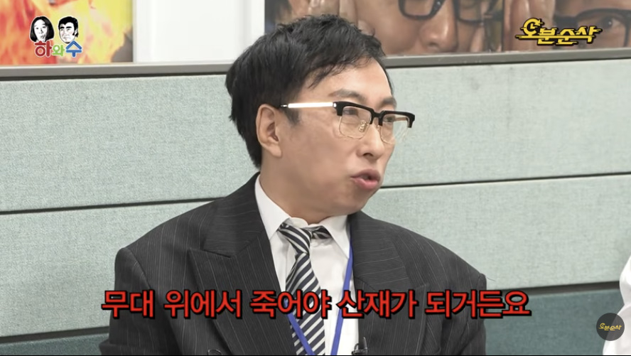 오분순삭화면캡처무한도전스핀오프‘하와수’가돌아왔다.17일공개된‘MBC오분순삭’에는‘하와수고민처리장’(이하‘하수처리장’)이새롭게공개되며무한도전돌+아이특집에나왔던한겨레신문하어영기자와‘형광펜’특집에나왔던무도키즈재석동생재순이최윤아씨가게스트로등장해회사생활의고민을던졌다.이날기자생활을20년동안했다고밝힌하어영기자는“요즘20년다닌부장급은말하자면낀세대같은느낌이있다.은퇴하면할일이없고은퇴할시기는가까워오지만세상은어렵고.은퇴까지직장생활어떻게해야되나?”라는고민을전했다.정준하는“그러면되지않을까요.밥뭐먹을래하면짜장면시킬때‘저는짬뽕이요’이런소리안하고짜장면시키고그래야되지않을까요?”라며“짬뽕얘기했다가하도싸대기를많이맞아가지고요”라고박명수를저격했다.박명수는“원래꿈이기자셨어요?”라고물었고,하어영기자는“원래기자였습니다”라고답했다.이에박명수는“저희는개그맨인것처럼?그럼너무좋은직장을다니셨네”라고말했다.하어영기자는“사실은너무행복한20년이었어요”라고화답했다.박명수는“우리도마찬가지잖아.저는무대위에서죽을거예요”라며감동스러운가운데“무대위에서죽어야산재가되거든요”라고오랜만에박명수어록을생성해냈다.이어“농담은아니에요.하루라도더무대에서는게저의목표고”라며“저는꿈이고3때생긴거예요.그전까지는지휘자가꿈이었고그런꿈이있었어요.작곡가”라고말했다.정준하는“10년뒤에뭐할거야?”라고물었고,박명수는“10년뒤에트로트작곡도할수있고그런것도다미리준비하고있어요.악기도계속배우고있고”라며준비중인미래를언급하며부지런함을어필했다.정준하는다시“무대에선언제쓰러지실거예요?”라고물었고,박명수가“무대에선이제”라고말하는순간마이크배터리가다닳으며삐-소리가났다.박명수는“지금얼마안남은것같아요”라며가슴을부여잡아웃음을줬다.오분순삭화면캡처오분순삭화면캡처이소진기자[email protected]©스포츠경향.무단전재및재배포금지.
